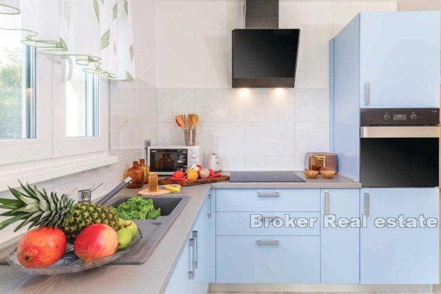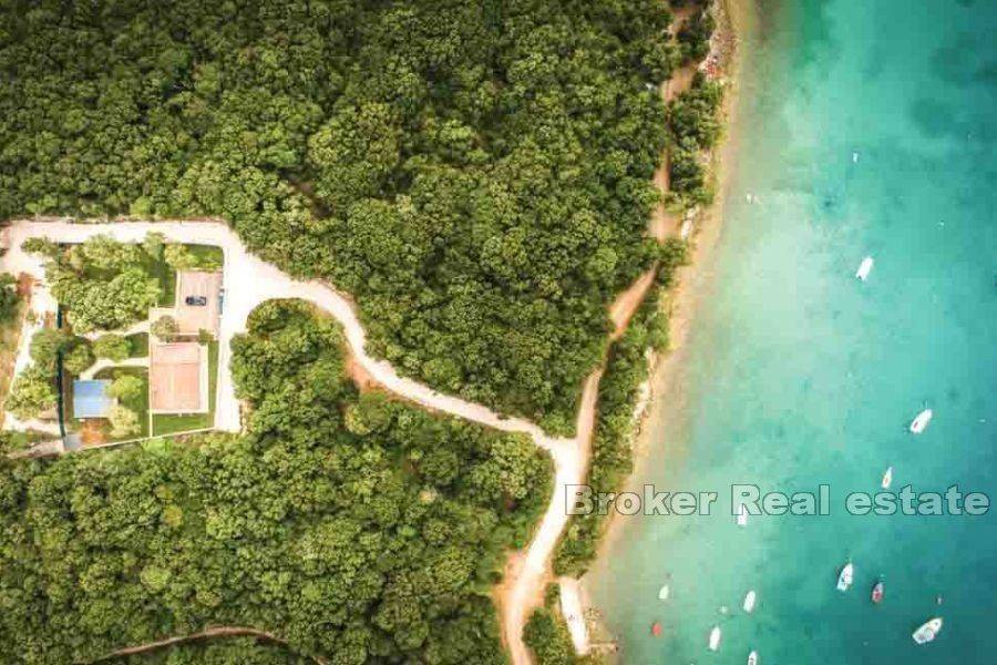 This charming holiday home, located in the first row to the sea near Rovinj, offers the perfect combination of comfort and peace.   The property is spread over a large plot of 3240 m2, surrounded by lush greenery that ensures privacy and peace.   This warm home consists of a living room, kitchen with dining area and two bedrooms with private bathrooms.   For year-round comfort, the house is equipped with underfloor heating in all rooms and three air conditioners.   The outdoor space consists of a beautifully landscaped garden with a mobile home, a space for socializing with a barbecue, an outdoor shower, a children’s playground for the youngest, and four parking spaces.   The mobile home, which offers an additional 32 m2 of living space, includes two bedrooms, a bathroom and a living room with a kitchen.   The property has a waterfront mooring concession, which is only 50 meters away, adding an extra layer of convenience for those who enjoy boating or other water activities.   This property is the perfect oasis for anyone looking for a spacious and peaceful retreat in the middle of untouched nature, all while being just a few steps away from the calm sea.