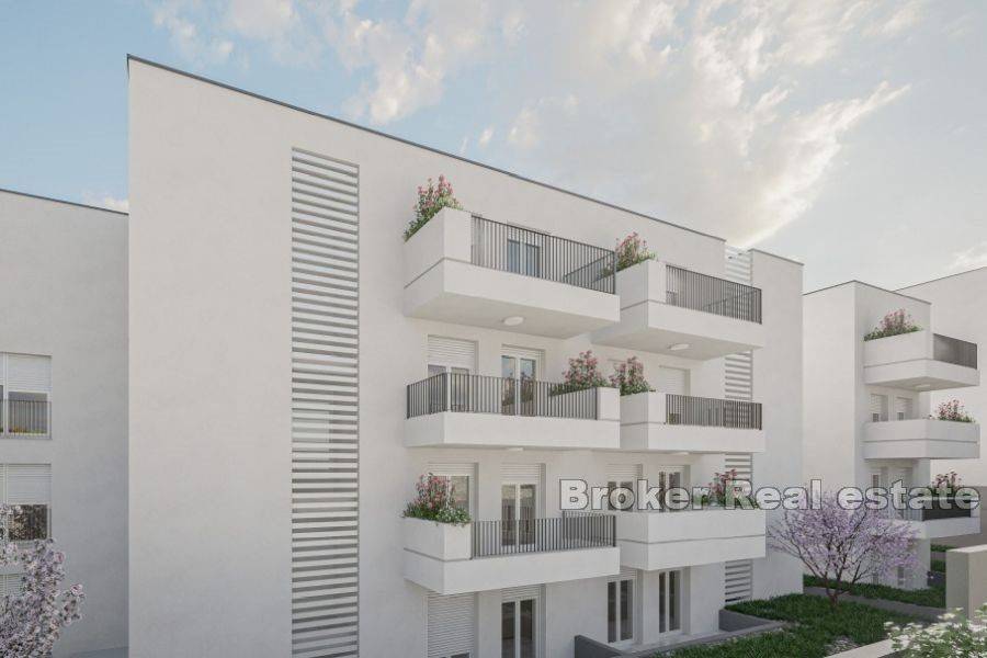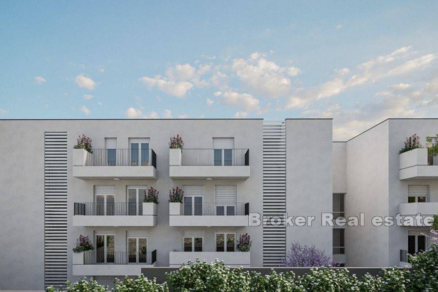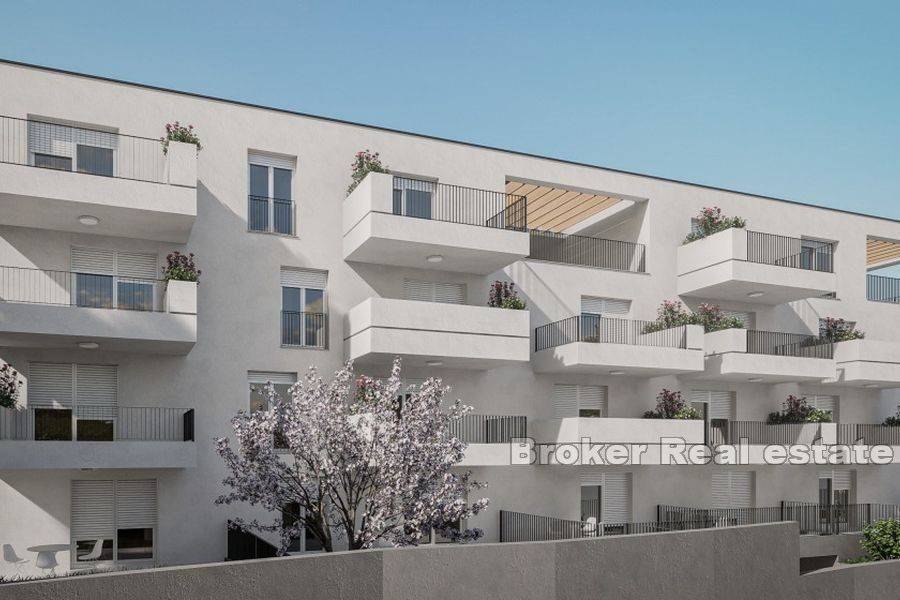 A modern building with an elevator and 17 apartments is under construction on the southern side of the island of Čiovo. In an excellent location, it will be very close to the sea and the wide road that leads to the exit from the island and the apartments will have a view of the sea. The facility will be south oriented and surrounded by newly built buildings. The building will have a total of five floors. In the basement there will be garage parking spaces and storage rooms. Five apartments will be located on the next three floors, while there will be only two spacious apartments on the last floor. There will be identical apartments on each floor and the offer includes one bedroom apartments with one bathroom and two bedroom apartments with two bathrooms. In addition to the interior space, the apartments will also have access to a covered or uncovered terrace or balcony. On the top floor, there will be two three bedroom apartments with three bathrooms and a toilet, as well as a comfortable living area and a terrace or balcony. Each apartment will have a laundry room and a storage room and the living area will be oriented to the south with a view of the sea. Along with the purchase of an apartment, the purchase of a garage or outdoor parking space and a storage room is also mandatory. Quality materials will be used in the construction and furnishing (tiles and high class sanitary ware, electric shutters, air conditioner in every room, underfloor heating etc.). The apartments are an excellent choice for all those looking for an apartment in a quiet location with a view of the sea.   LOW GROUND FLOOR: S1 – 73.62 m² + terrace 24.88 m² – 269,000 € – SOLD! S2 – 49.94 m² + terrace 22.65 m² – 208,600 € – SOLD! S3 – 73.48 m² + terrace 20.57 m² – 306,350 € S4 – 73.62 m² + terrace 26.08 m² – 305,100 € S5 – 73.89 m² + terrace 20.52 m² – 299,500 € HIGH GROUND FLOOR: S6 – 73.62 m² + balcony 16.48 m² – 308,250 € S7 – 49.94 m² + balcony 9.15 m² – 185,500 € – SOLD! S8 – 73.48 m² + balcony 16.48 m² – 308,900 € S9 – 73.61 m² + balcony 16.48 m² – 305,600 € S10 – 73.89 m² + balcony 9.15 m² – 294,600 € FIRST FLOOR: S11 – 73.62 m² + balcony 16.48 m² – 314,100 € S12 – 49.94 m² + balcony 9.15 m² – 191,000 € – SOLD! S13 – 73.48 m² + balcony 16.48 m² – 314,900 € S14 – 73.61 m² + balcony 16.48 m² – 286,000 € – SOLD! S15 – 73.89 m² + balcony 9.15 m² – 275,000 € – SOLD! SECOND FLOOR: S16 – 130.51 m² + balcony 25.54 m² + terrace 45.01 m² – 844,000 € S17 – 137.55 m² + balcony 23.53 m² + terrace 46.02 m² – 943,000 €
