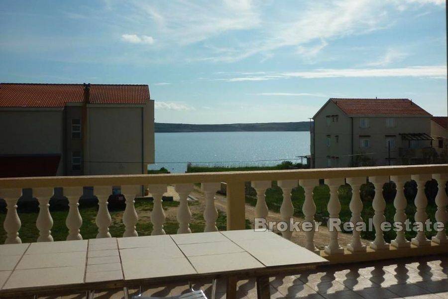 Apartment house of 600m2 located in a quiet bay of Pag, 80m from the sea. The house is spread over four floors. On the ground floor there is one two-bedroom apartment, on the first and second floor there are two two-bedroom apartments, while the third floor is unfinished and offers the future owner the opportunity to build two two-bedroom apartments or a four-bedroom apartment. The apartments have an area of approximately 70m2 and consist of a living room and kitchen, two bedrooms, one bathroom and a terrace of approximately 24m2 with an impressive sea view. All apartments have separate entrances and floors are connected by an external staircase. The property was built in 2000 on a plot of 567m2. It has a parking space for several vehicles. Close to the necessary facilities for living and sandy beaches, 10 km away from the ferry port. Attractive offer that offers the possibility of continuing the already well-established tourist business or residential use.