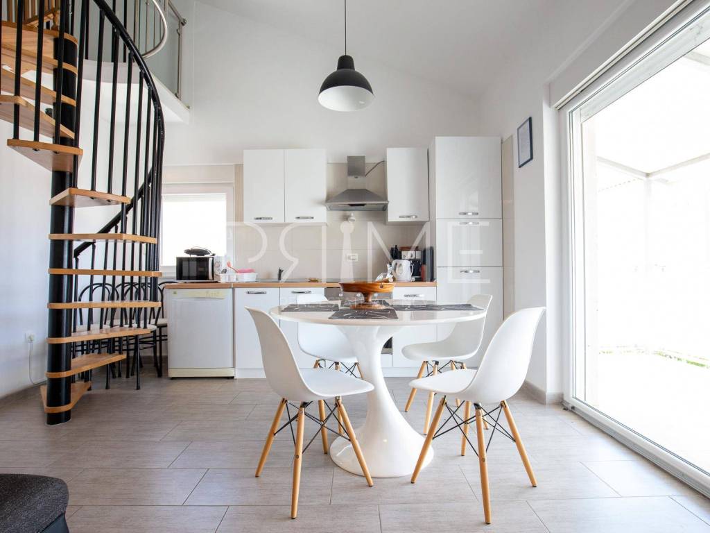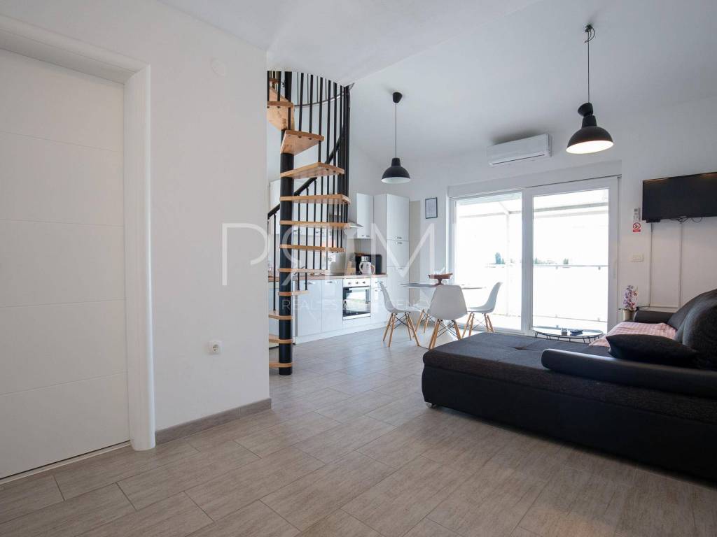 Stan površine 60 m2 , nalazi se na drugome katumanje stambene zgrade ( sveukupno 4 stambene jedinice) sastoji se od kuhinje, blagovaone, dnevnog boravka,dvije kupaone, tri spavaće sobe i velike terase(loggie). Stan se prodaje kompletno namješten i opremljen. Zgrada je kvalitetno građena, u gradnji su se koristili isključivo najkvaliteniji materijali od renomiranih proizvođača. Pripadaju mu dva vanjska parkirna mjesta.  Ne zahtjeva nikakva ulaganja. Nalazi se na mirnoj lokaciji.Više informacija na upit!!