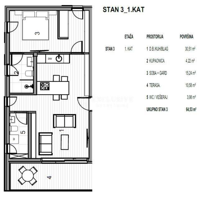 Apartamento T1 novo, primeiro andar, Centar, Krk