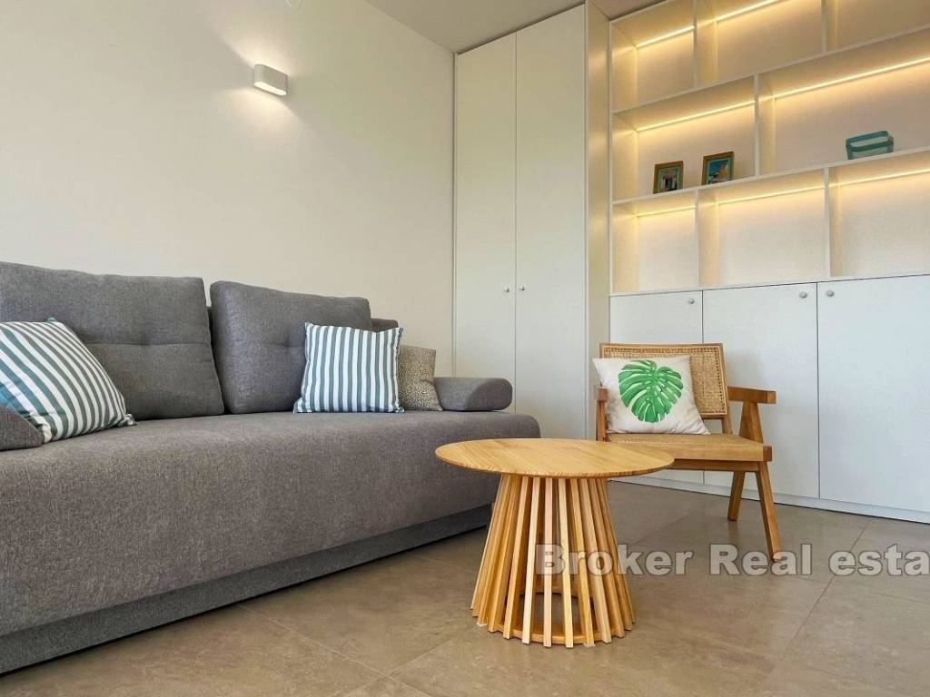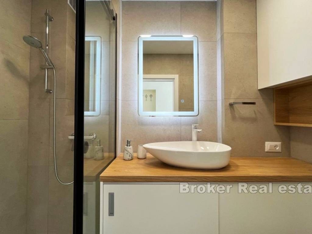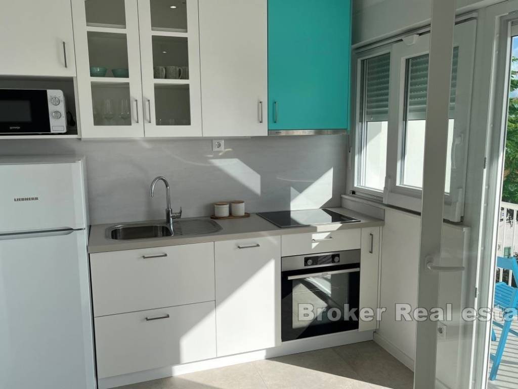 Long-term fully furnished and equipped apartment for rent on the 2nd floor of a private house in an elite location, Bačvice. The apartment is 55 m2, oriented south-west, and consists of 1 air-conditioned bedroom. The apartment consists of a kitchen with a dining room and a spacious living room in a unique space. The apartment also has a south-facing balcony with a panoramic view of the sea. Due to the orientation, the entire area is exposed to sunlight throughout the day. The entire apartment, except for the bedroom, has underfloor heating. There is an option to rent an apartment including a separate room on the top floor. The room has its own bathroom, mini kitchen and a large terrace. If you rent an apartment including a room, the price is €1,400. In the case of this apartment, it should be noted that it is a first move-in. The location of the apartment is very quiet, and all necessary amenities are nearby. Beaches, shops, numerous restaurants, school and kindergartens. The heart of the city can be reached on foot from the apartment in 20 minutes. * Considering the variability and dynamics of renting, the ad is informative and does not necessarily mean that this apartment is available for rent.