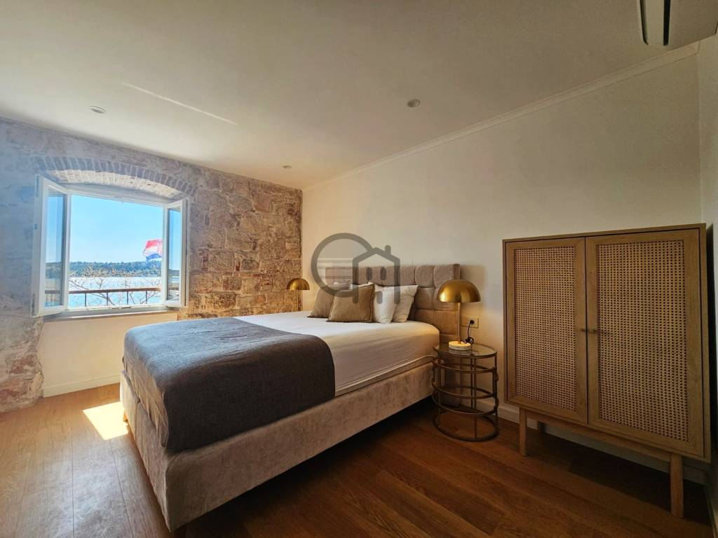 In the heart of Šibenik, offering a magical view of the promenade, the sea, and the impressive St. Anthony Channel, a spacious, luxuriously renovated apartment is for sale, located on the first floor of a small residential building.
