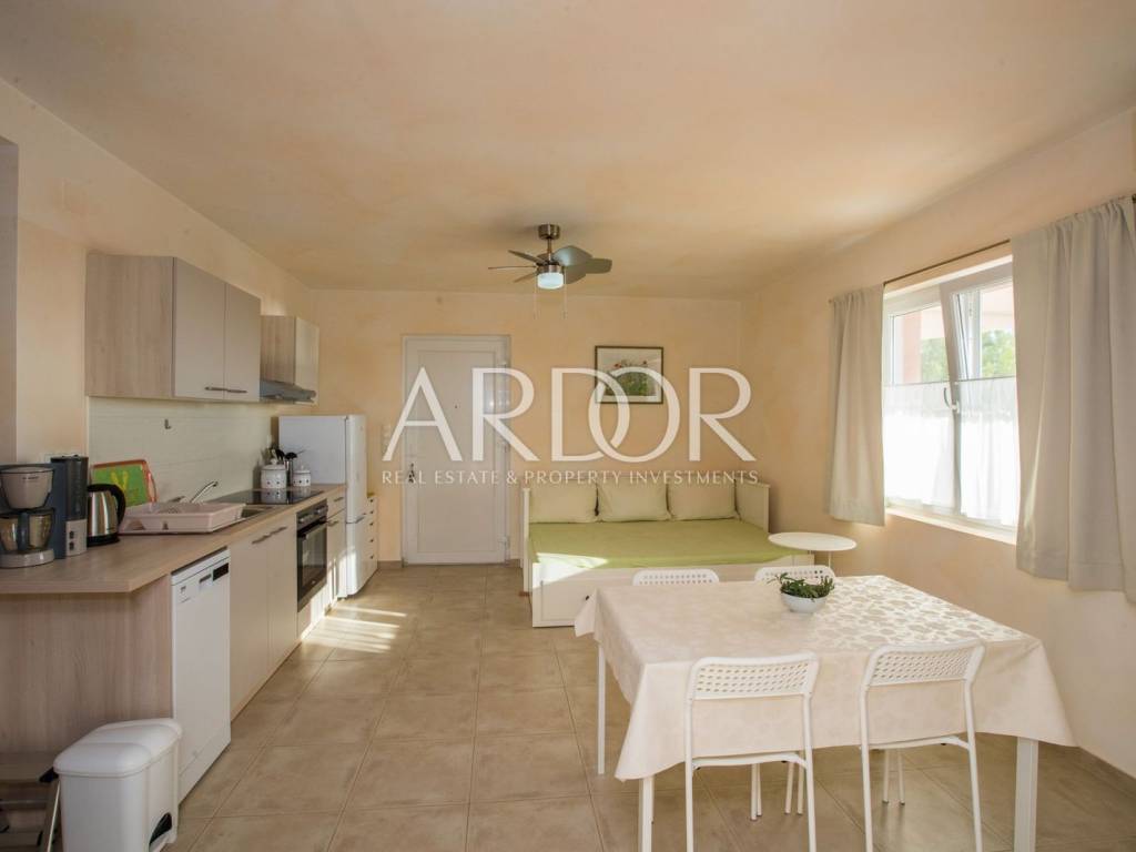 This beautiful detached house, built in 2015 with complete and valid building documentation, is located just a 5-minute walk from the sea. The property sits on a 1,450 m² plot and boasts a total living area of 533 m², built to the highest quality standards. The house has four floors, each with its own separate entrance, connected by an external covered staircase. The entire building has thermal insulation, while the flat roof is both sound- and heat-insulated and completely waterproof. The basement (80 m²) has two entrances and is currently used as a cool summer apartment. It consists of a large open space (45 m²) with two windows, three separate rooms (13 m², 13 m², and 9 m²), a bathroom with shower, and a laundry room. The entire space is fully waterproofed. The high ground floor features a three-bedroom apartment (74 m²) with a spacious open-plan living room with fireplace, modern fully equipped kitchen, and dining area. There are two bedrooms, a large bathroom with shower, and two covered balconies (16 m² and 12 m²) offering views of the garden, neighborhood, and a partial sea view. Ceramic flooring, SAT-TV, and air conditioning are installed throughout. The first floor has an identical layout to the ground floor, with the difference that the bathroom features a bathtub. From this apartment, you can enjoy an unobstructed sea view from two covered balconies (14 m² and 12 m²). The second floor (penthouse) offers 74 m² of interior space with two bathrooms, fireplace connection, SAT-TV, and air conditioning. The highlight is a 100 m² terrace with a spectacular panoramic view of the sea, islands, Velebit mountains, the old town of Rab, and the surrounding landscape. This area can be adapted as residential or commercial space (for example, a café or restaurant), and all permits for such use already exist. The unit has separate meters for electricity and water, and full utility connections. A 50 m² detached garage with two doors and windows includes water, power, and drainage connections and can be converted into residential space or extended with an additional floor. The current owner uses it for a camper van (3.10 m high, 7.25 m long, 2.35 m wide). The garage height of 3.60 m allows parking of large vehicles, with enough room for a car, motorbike, quad, bicycles, and storage. The yard can be parcelled and landscaped according to personal preference, and there is ample parking. All apartments are furnished, fully equipped, and categorized for tourist rental, allowing immediate continuation of business. A supermarket is just 150 meters away. Dear clients, in accordance with the Real Estate Mediation Act, property viewings are possible only upon signing a Mediation Agreement. In case of purchase, the buyer is obliged to pay the agency commission. ID CODE: 2447 Sendi Vinski Agent s licencom Mob: 0038598443289 Tel: 0038551222673 E-mail: prodaja@ardor-realestate.com www.ardor-realestate.com