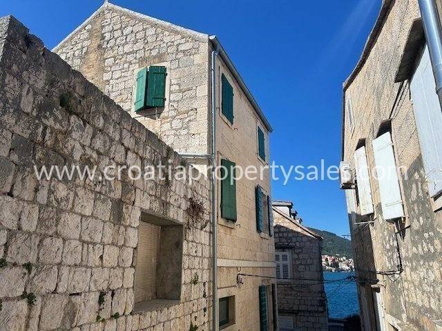 Old authentic stone house with a sea view, located in a narrow street, one of the most attractive tourist locations in Vis.Only 20 m from the sea, a beautiful promenade, cafes, restaurants and other interesting attractions of this island.The house is over 200 years old, with thick walls, more than 60 cm, and extends over 4 floors, each approximately 33 m2.On the ground floor there is a large tavern in two parts that serves as a storage room, and a water tank of about 12 m2.The first floor consists of an entrance area, hallway, small kitchen, bathroom, dining room and living room together that serves as a bedroom.During the summer season, this first floor is rented as a studio apartment.On the first floor there is an exit to a semi-covered terrace of approximately 35 m2, where there is also a bathroom and an outdoor kitchen.The second floor consists of a hallway, staircase and two bedrooms.The third floor consists of a staircase, one large and one small bedroom, and a high attic that is just an open space.The floors are new, the roof and windows are new, but the house needs a complete renovation.The house has all the necessary infrastructure, as well as access for a small car, but there is no parking.