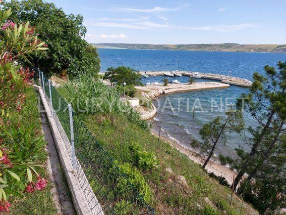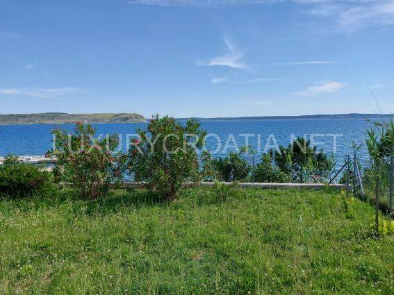 Croatia Posedarje area waterfront land for sale has 1200 sq.m. In addition to the land is a small mobile house included in price.
