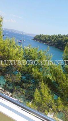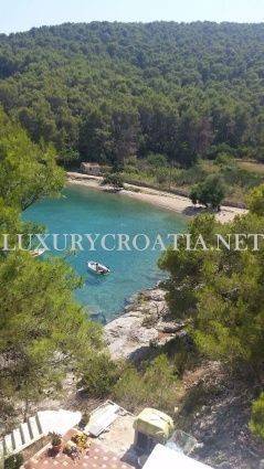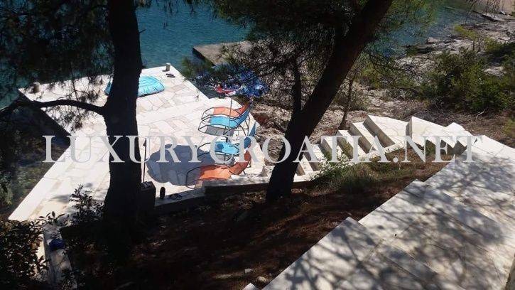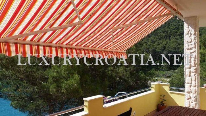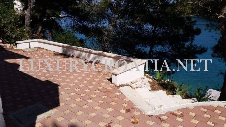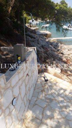 Waterfront house for sale with boat mooring, Solta island is a semidetached house, located in the small, hidden bay on the north side of this beautiful, wooded island. The island has good connections to the mainland due to its close position to Split, second largest city in Croatia, and regular ferries. The house is placed in a quiet area next to the beach, with no road between the crystalline Adriatic sea and the property. There is a public parking spot, situated 50 meters away from the property. This first row to the sea house offers a large mooring, enabling you to come and go by boat.