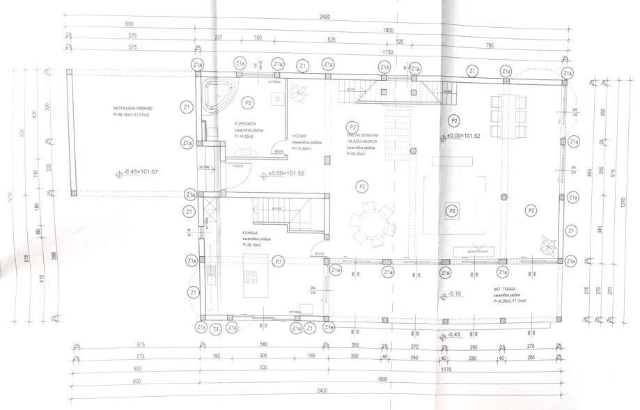 From the entrance door on the ground floor one enters the hall. On one side stretches a modern kitchen, and a luxurious bathroom with jacuzzi on the other one. An extremely spacious dining and living room of almost 100 square meters is centrally located, together with an attractive electric fireplace. Multiple balcony doors with massive window frames lead to covered terrace adorned by a colonnade, with access to an impressive pool of over 56 square meters and accompanying terrace for sunbathing and relaxation along with outdoor shower. Next to the entrance door is situated covered parking space that can accommodate 2-3 vehicles.