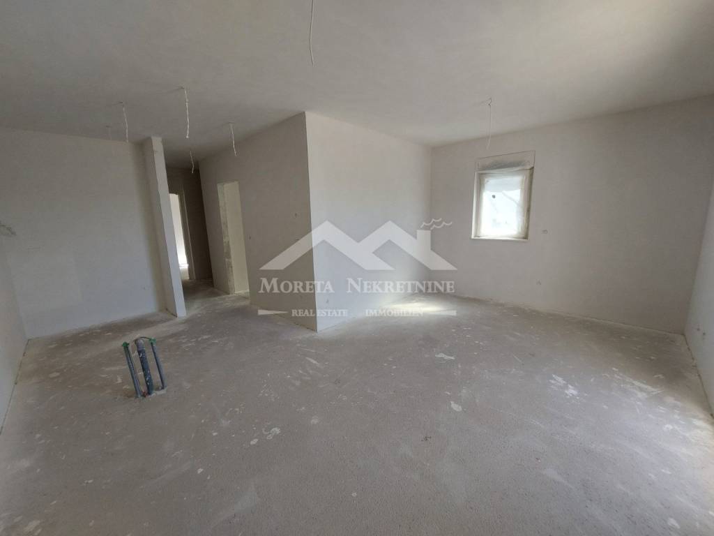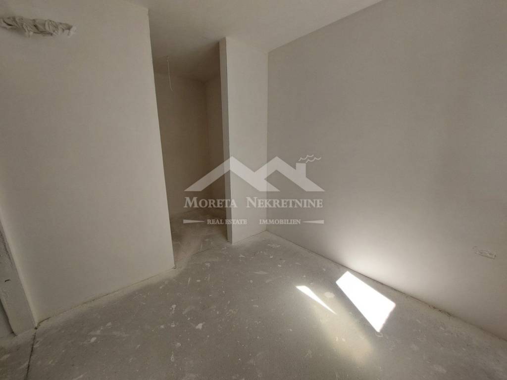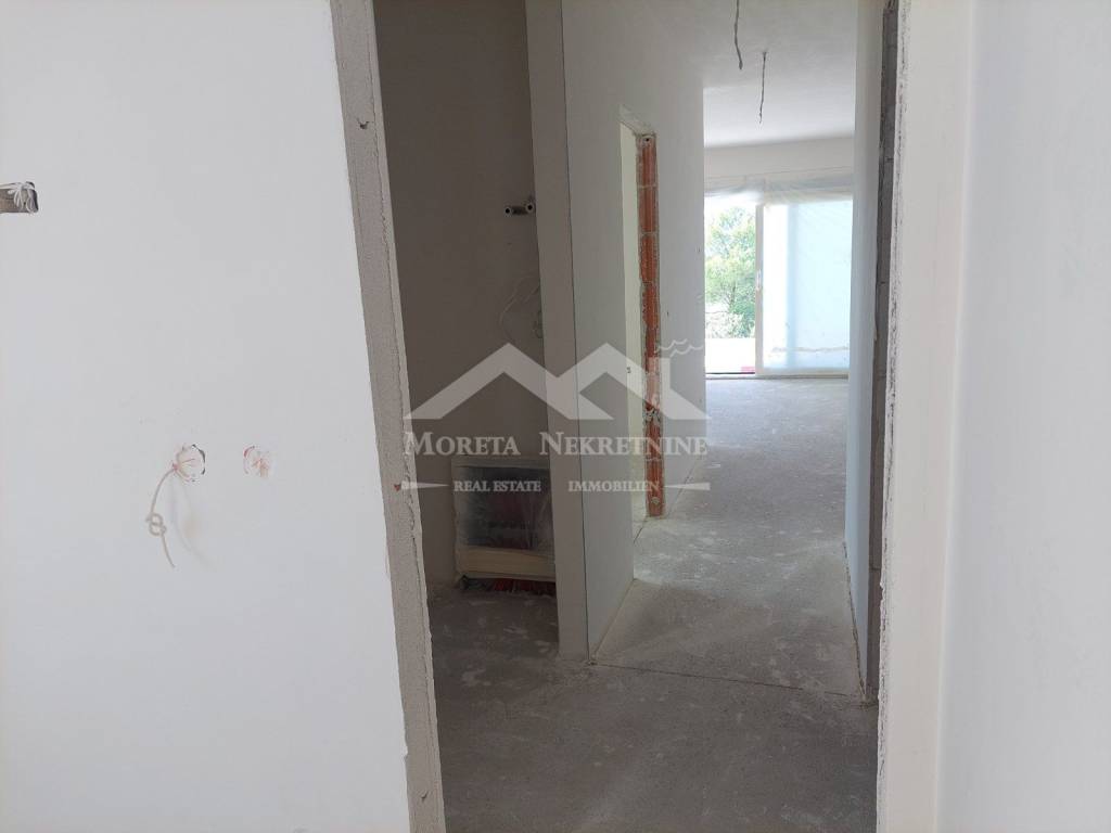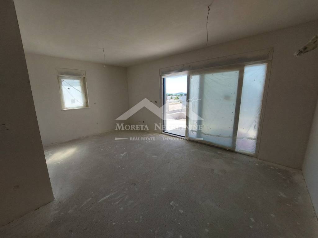 In Vodice, about 1800 meters from the sea, or the city center, two-bedroom apartments are being offered for sale, each with a view of the sea and the city of Vodice. The building is under construction, and the project is expected to be completed and ready for occupancy in the spring 2026. The building is being built according to modern construction standards, while the apartments will be equipped with quality equipment and materials such as: underfloor heating in all rooms, air conditioning in the living room and bedrooms, roller shutters with electric lifts, etc. The apartments on the ground floor are single-storey with their own gardens, while the apartments on the first floor are two-storey with their own terraces offering a beautiful view of the sea. The ownership is in order, the building permit has been issued. The offer includes: