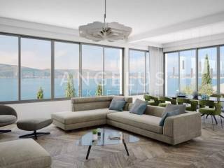 The entire villa is characterized by a magical panoramic view of the sea, which can be fully enjoyed thanks to the floor-to-ceiling aluminum windows.
