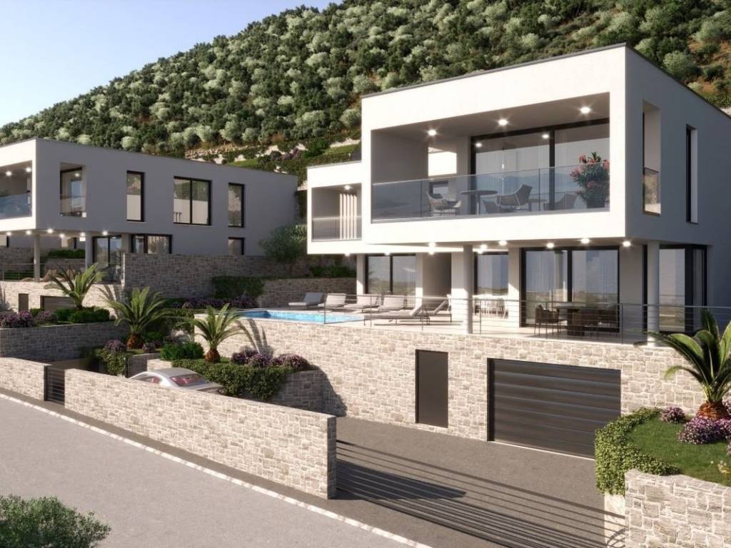 underfloor heating for year-round comfort, and modern anthracite-colored aluminum joinery that provides excellent thermal and sound insulation along with a sleek, contemporary aesthetic. The exterior is equally impressive – a heated swimming pool with a heat pump, sunbathing area, and a landscaped Mediterranean garden. Covered terraces are ideal for dining al fresco or enjoying evening relaxation. The garden is fully enclosed with stone walls, featuring electric sliding gates and a garage with roller doors – offering full privacy and security. The villa is situated in a quiet location, well protected from noise, and perfectly oriented to the south, ensuring sunlight from morning to evening. Nearby are secluded beaches, renowned wineries, and fine dining restaurants, while the center of Orebić is just a few minutes’ drive away. Payment Schedule: • 30% upon signing the contract • 30% upon completion of structural works • 20% upon installation of facade and windows/doors • 10% upon completion of interior works and approval by supervising engineer • 10% upon obtaining the occupancy permit Estimated completion time: 1 year and 6 months from the contract signing. An ideal opportunity for a luxury retreat, family living, or high-end investment – with guaranteed returns and a truly elevated lifestyle.