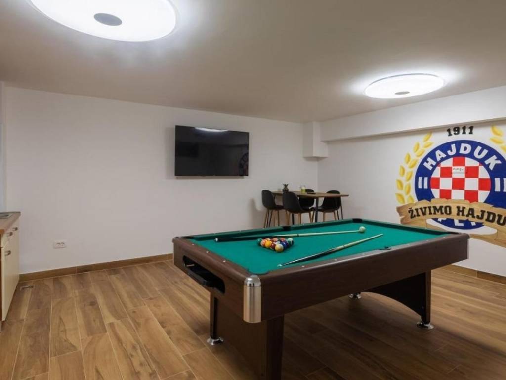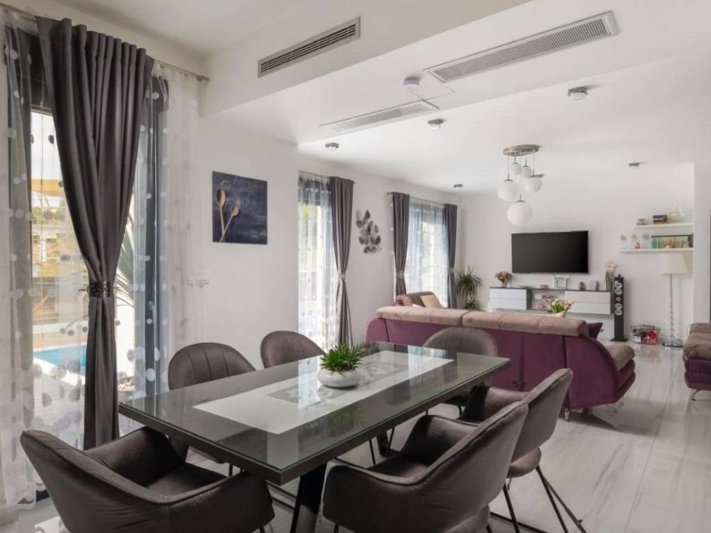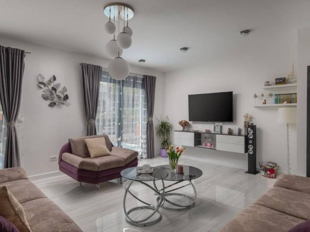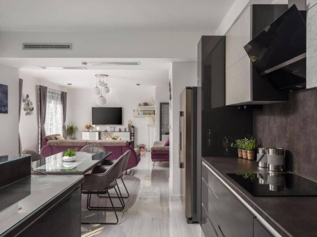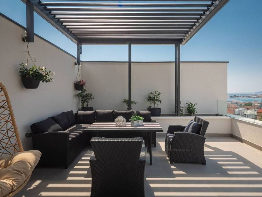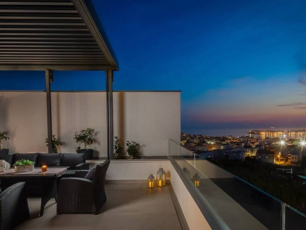 An exclusive villa with panoramic views of the crystal-clear sea is available for rent, located near Split. Positioned on the southern side, it exudes ultimate comfort, a modern interior, and elegant design. The villa offers a refined and contemporary ambiance with a unique view of the Mediterranean coast. With meticulous attention to detail, modern technical equipment, top-quality construction materials, and a touch of glamour, this villa provides a luxurious retreat for any family. It is spread over three floors.   The villa consists of a living room and kitchen, 4 spacious bedrooms, 4 bathrooms, a swimming pool, and high-quality garden furniture with a barbecue for preparing gourmet meals. It also offers private parking, a balcony, and both open and partially covered terraces.   The ground floor features a large living room perfect for evening gatherings, a dining area, and a kitchen that opens onto a partially covered terrace—ideal for relaxing by the pool. A bathroom is also located on this level.   The first and second floors contain 4 bedrooms, each with an en-suite bathroom, and access to an outdoor terrace with a lounge area.   The villa is fully air-conditioned.   In front of the property, there is a private outdoor parking area and a garage, a heated pool with sea views, and premium garden furniture with a barbecue.   The property is rented fully equipped and furnished with high-quality interior and exterior elements, including household appliances, flat-screen TVs, LED lighting, an automatic cooling system, and more. The villa is available starting from mid-September 2025.   This unique property is an outstanding choice thanks to its southern orientation and Mediterranean climate, panoramic views of the pristine sea, modern architectural design, and its proximity to numerous sandy beaches. It is located just 9 km from the nearest major city, Split, and 30 km from Split Airport.