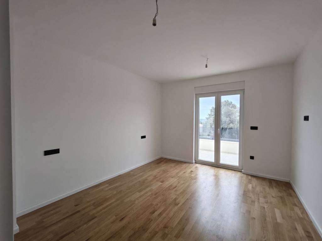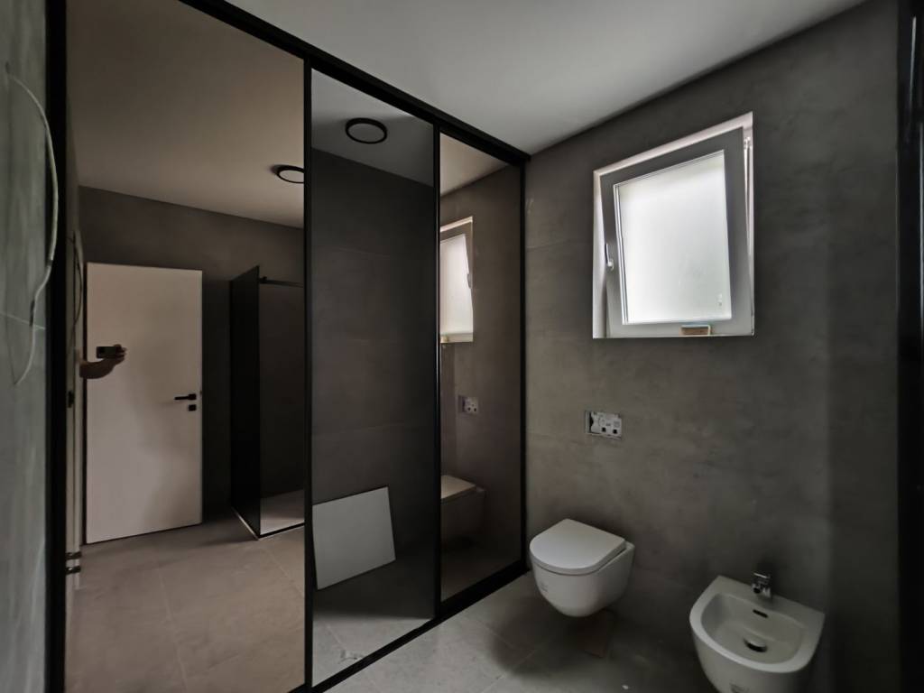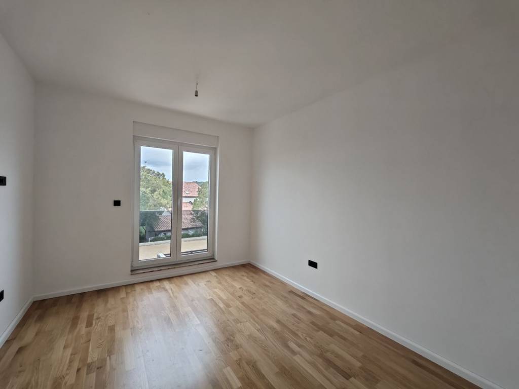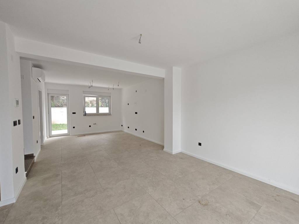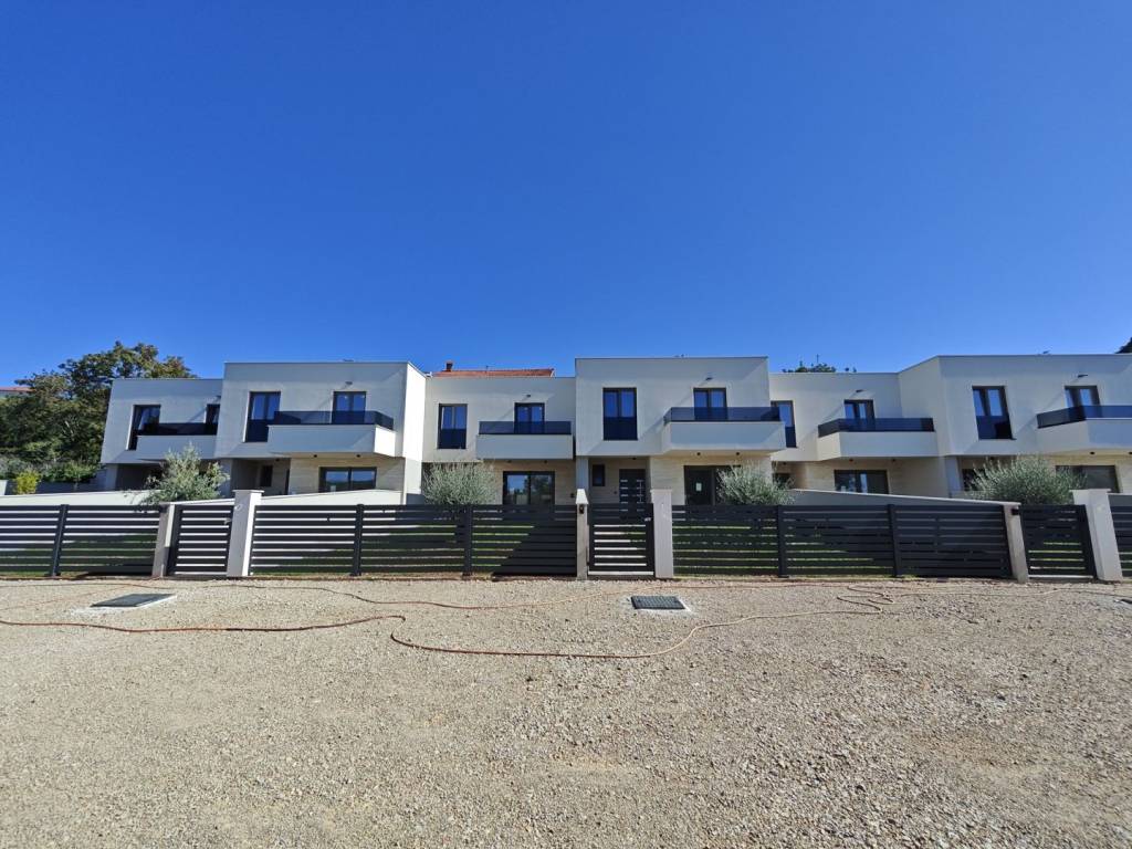 This modern terraced house is located in an excellent location, perfectly suitable for family life, with close proximity to all necessary amenities. It is a quality new building that offers a combination of functionality, comfort and modern design. The gardens on both sides of the house provide privacy and additional space for relaxing or socializing outdoors. The house has a 10 cm thick facade that ensures excellent thermal insulation, while triple-layer PVC glass windows further increase energy efficiency. When entering the house, you come to a spacious hallway that leads to a bright living room connected to a modern kitchen and dining room. Large glass openings in the living room provide access to the terrace and garden and bring in plenty of natural light. There are three bedrooms on the first floor, decorated with high-quality parquet, while the other rooms are paved with high-quality ceramic tiles. One bedroom has a balcony overlooking the garden, providing an intimate space to relax. Also on the first floor are two bathrooms equipped with top-quality Laufen and Geberit sanitary ware, along with a modern shower cabin. The house is equipped with underfloor heating on a heat pump system, while ceiling air conditioning provides a pleasant temperature during the summer months. Also, preparations have been made for the installation of solar panels, which provides future owners with the possibility of additional energy savings. Two parking spaces are available in front of the house, which ensures convenience for a family with several vehicles. This house represents a perfect combination of quality, contemporary design and an excellent position for a comfortable and functional life. The property is included in the VAT system, so buyers do not pay real estate sales tax.