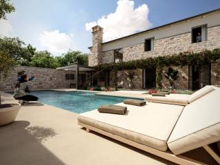 The house needs to be renovated and there is a project for that. The house has all the necessary documentation. Water and electricity on arrival. According to the project of the famous Croatian architect, the house is designed on two floors. On the ground floor of the house there is an open space that connects the dining room, kitchen and living room with a beautiful view of the medieval town of Bale and its Venetian beauty. On the ground floor there is also a toilet, technical room and storage. Through the living room up the stairs we come to the first floor where there are three luxury bedrooms each with its own bathroom. On the first floor through the windows of the rooms we have a beautiful view of the greenery of nature and olive groves.