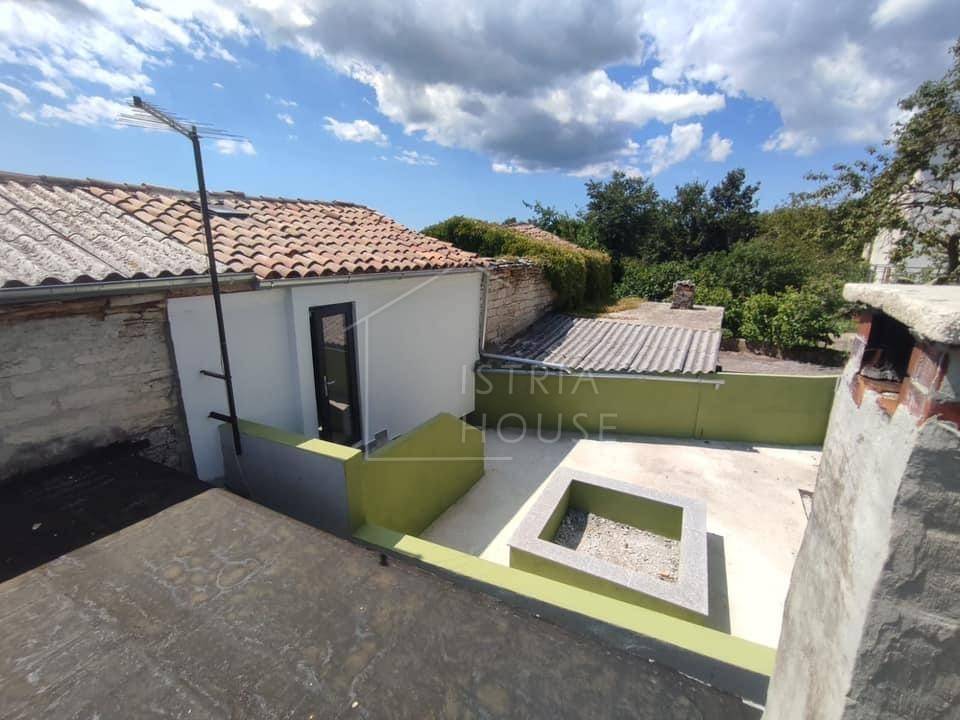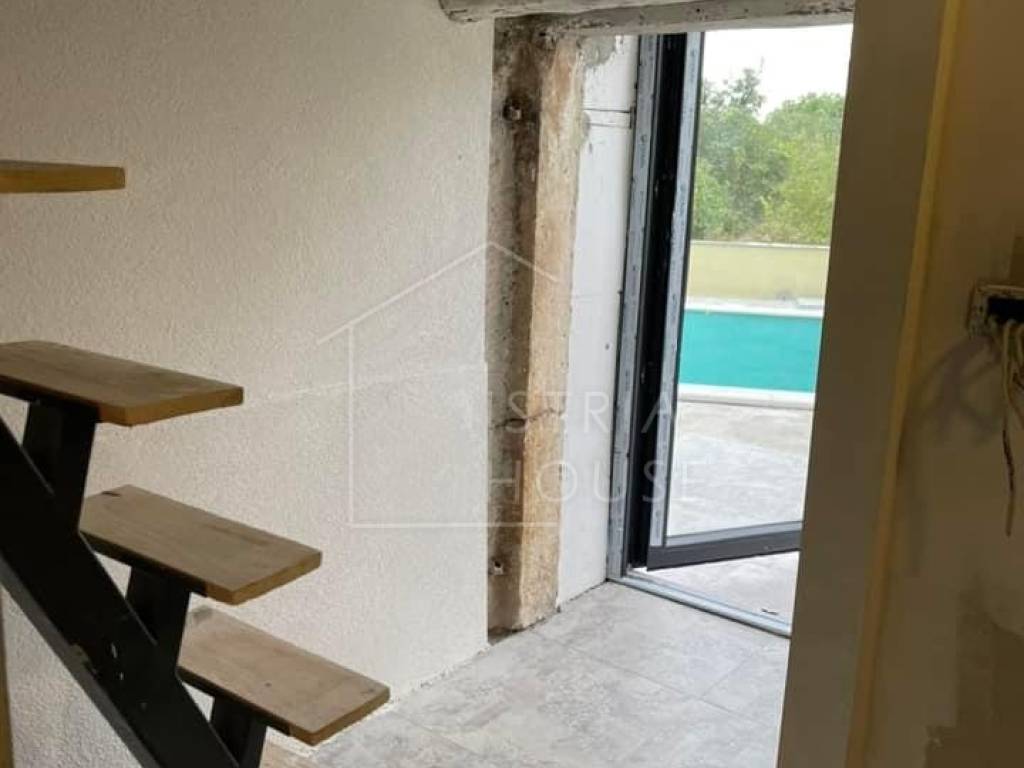 In one of the settlements of the municipality, a renovated Istrian antique house of 35 m2 with a garden of 225 m2 with a 9 m2 swimming pool is for sale. The house consists of ground and first floor. on the ground floor there is a kitchen with a dining room and a living room and a bathroom, while on the first floor there is one bedroom with a walk-in wardrobe and an exit to the back terrace and garden.