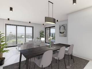 The open space living area stands out for its contemporary design and high-quality materials. The spacious living room, dining room and kitchen create a fluid and connected space, enriched by natural light that enters through the windows.