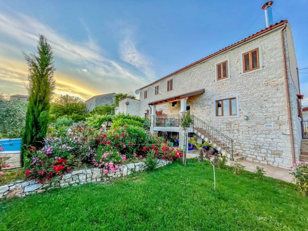 A phenomenal stone house with a swimming pool, an idyllic garden and a sea view is for sale. The property is more than a hundred years old, and was completely renovated in 2016 to its current state. The property is located on the edge of the village, which gives the property exceptional privacy. The net square footage of the house is 227m2 and extends over two floors. On the ground floor there is a bright living room with a dining room and a modern and spacious kitchen, one toilet, a large storage room and an exit to a beautiful terrace with an open view. On the first floor there is one large bedroom with its own bathroom and two bedrooms and another bathroom. On the first floor there is also a huge terrace of 44m2 with a panoramic view of the sea.