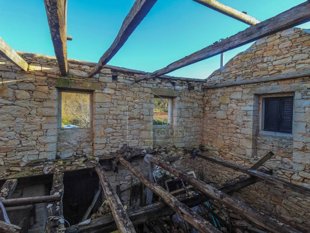 A detached autochthonous stone house for sale in the vicinity of Motovun, on the edge of the town. The stone house has a total square footage of approximately 100m2, and consists of a ground floor and a first floor. The house needs to be completely renovated, while the main load-bearing walls are healthy. All the necessary infrastructure is nearby, and it is possible to build a swimming pool in the grove with a view of nature.