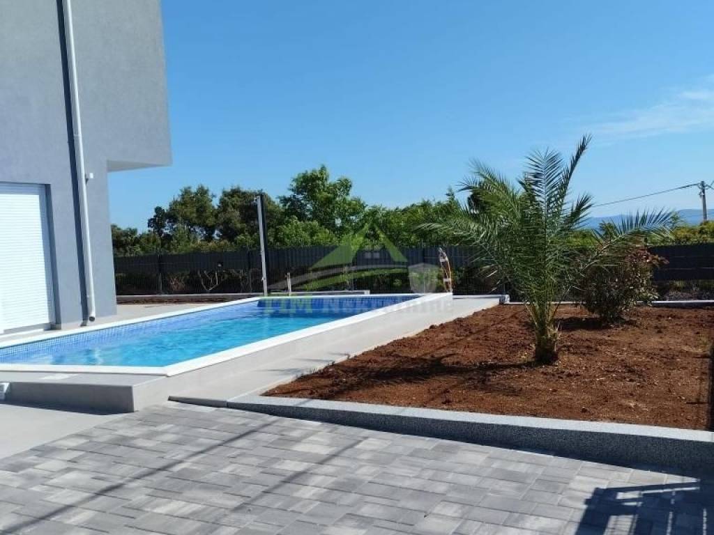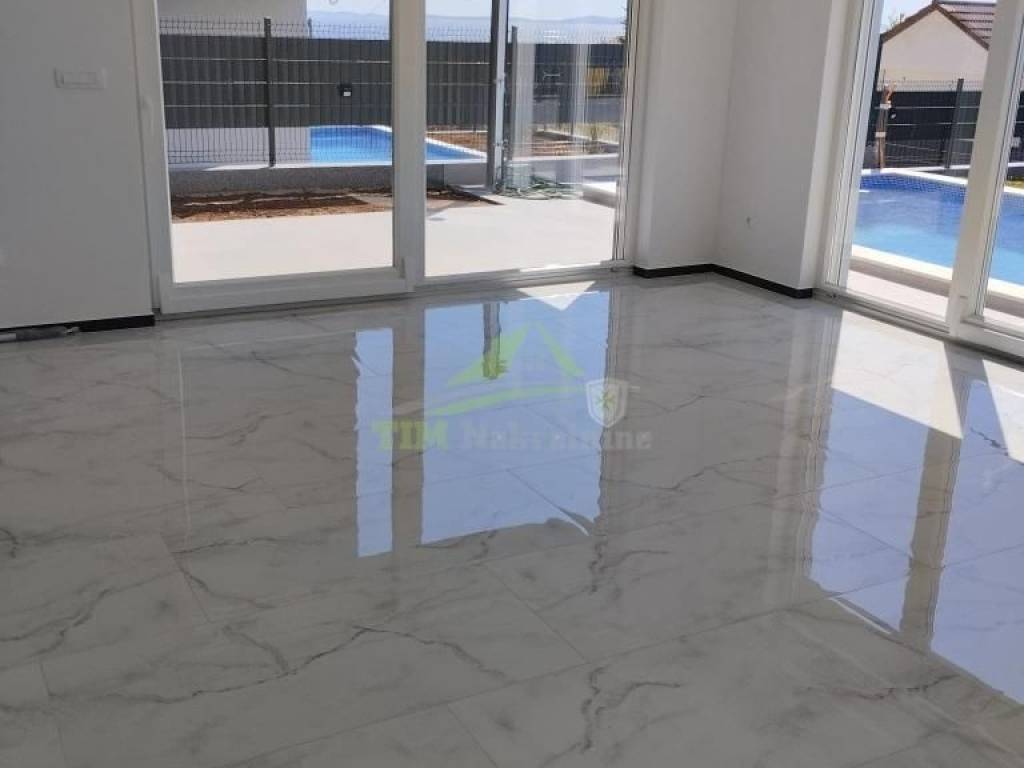 Samostojeća visoka prizemnica sa bazenom - novogradnja; idealna za obiteljski život ili kao investicija za turistički najam.Kuća ukupne površine 160 m2; sastoji se od prizemlja, kata te prostrane krovne terase sa koje se pruža prekrasan pogled na more.Građena je kvalitetnim materijalima (blok opeka te termofasada 10 cm); opremljena kvalitetnom PVC stolarijom sa roletama na struju; protuprovalnim vratima; u postupku priprema za solarne ploče.Grijanje je kombinacija jednog dijela putem podnog grijanja ( dnevnog boravka i kupaoe na katu) te drugog djela putem klima uređaja; hlađenje osigurano u svim prostorijama kao i pogled na more iz svake sobe.U dvorištu se nalazi prostrani bazen (priprema grijanja putem toplinske pumpe); uređena te ograđena okućnica sa dva parkirna mjesta.Kuća se prodaje u fazi ključ u ruke.