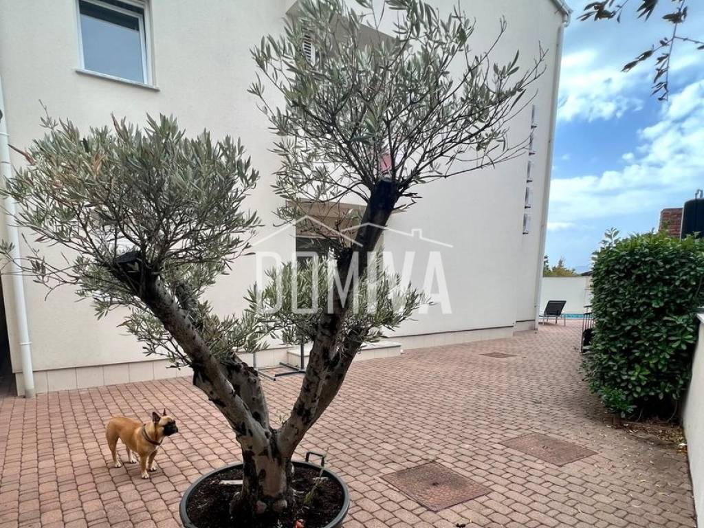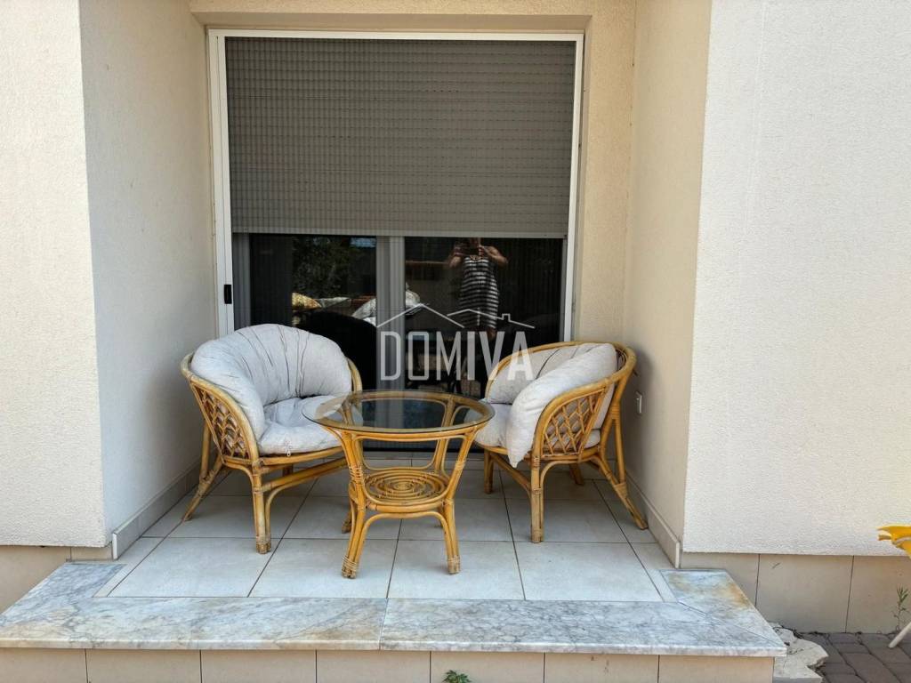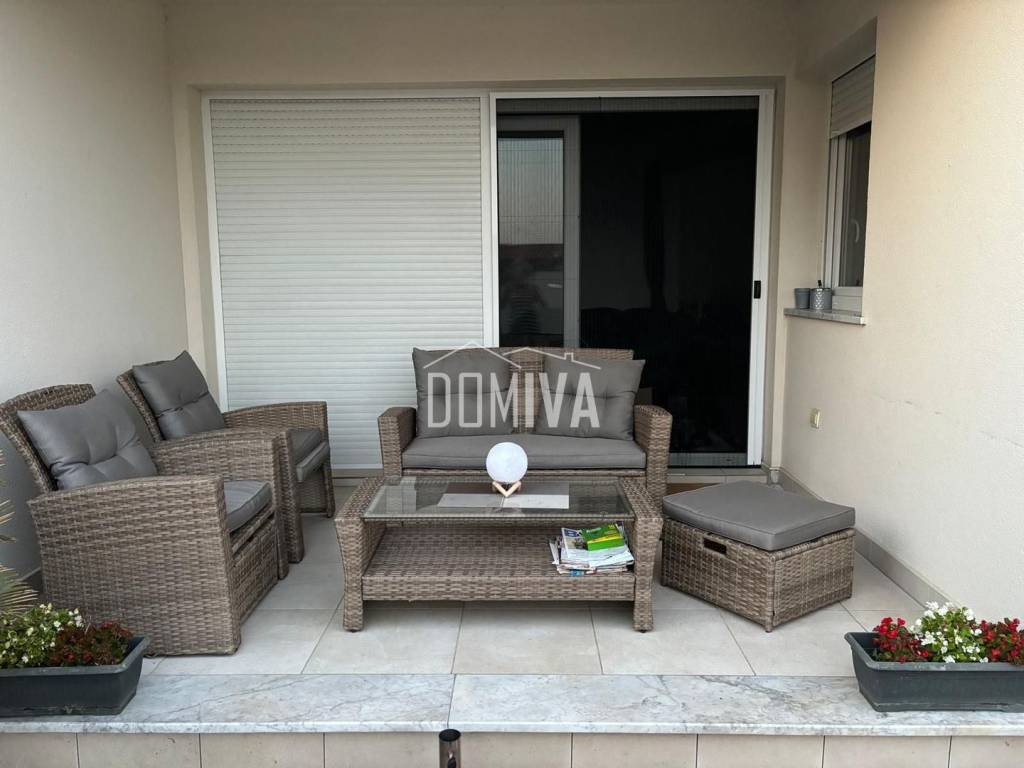 For sale is a furnished apartment on the ground floor of a newer building with its own garden and swimming pool. The apartment consists of a hallway, a toilet, a storage room, a kitchen, a living room, a loggia, two bedrooms, and an entrance area, with a total area of 94.57m2, along with a garden area of 176m2 and a parking space. The apartment is furnished, used only during vacations, free of any burdens, with orderly documentation.