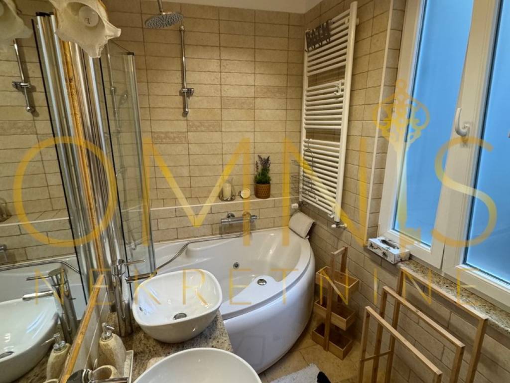 Stan je kompletno renoviran od podova, svih instalacija, vanjske stolarije, sustava grijanja I hlađenja. Prodaje se potpuno opremljen, namješten kvalitetnim namještajem, Murano lusterima u cijelom stanu.