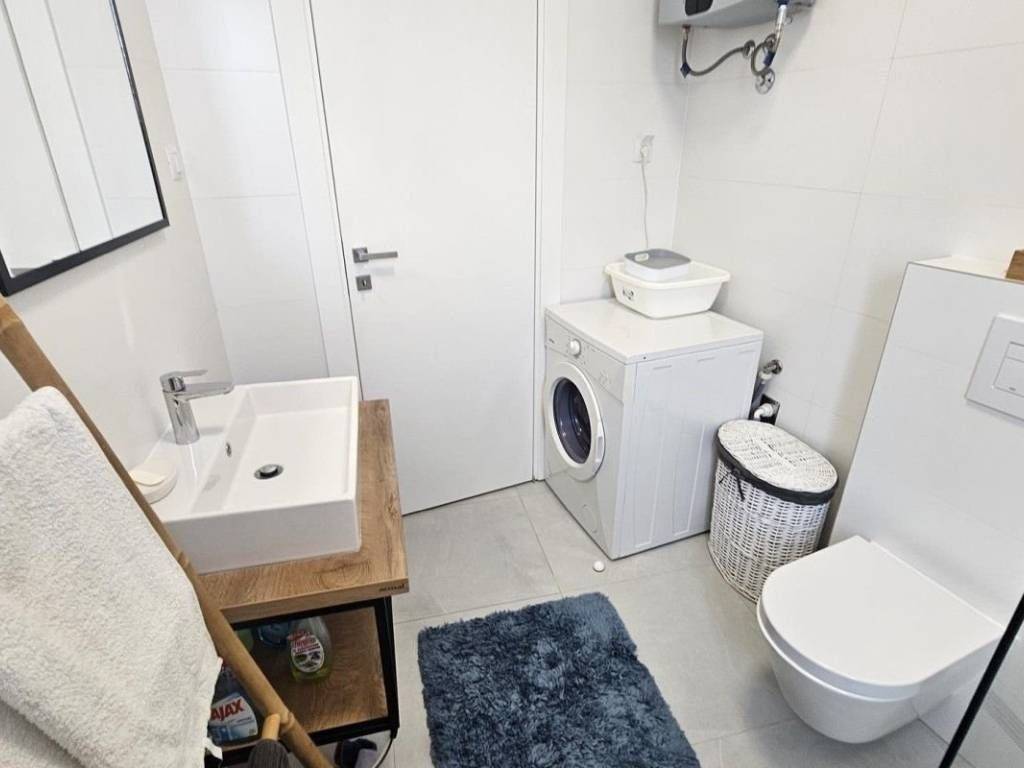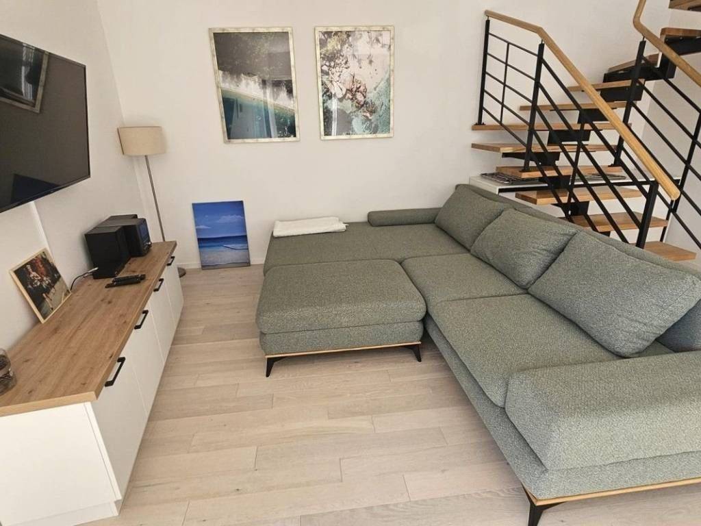 For sale is a duplex apartment on the ground floor and first floor of a multi-family house in the town of Krk, 650 meters from the sea and the beach.   The total living area is 93.20 m². The ground floor has an entrance hall, bathroom, kitchen with dining room and living room, while internal stairs lead to the first floor where there are three bedrooms and another bathroom. One of the rooms has a view of the sea and the old town of Krk.   The apartment has a green garden of 124 m² with automatic irrigation, a summer kitchen with an awning and a garden house. It is equipped with PVC exterior carpentry, security doors, multi-split air conditioning and infrared heating panels in the rooms.   It is sold fully furnished and ready to move in immediately. The price also includes two parking spaces in a fenced shared yard.