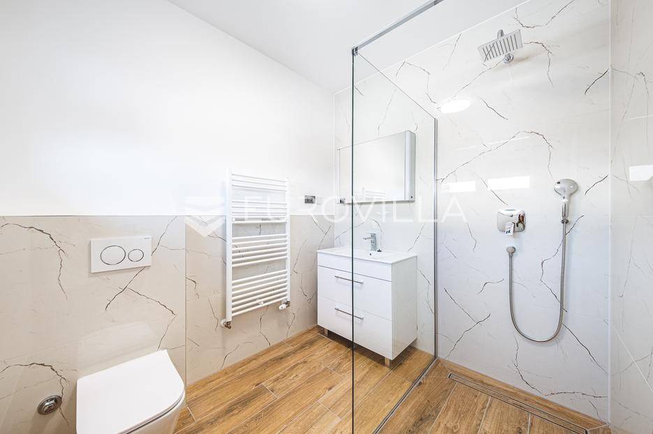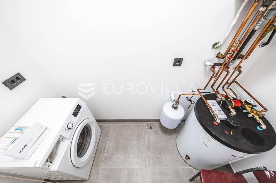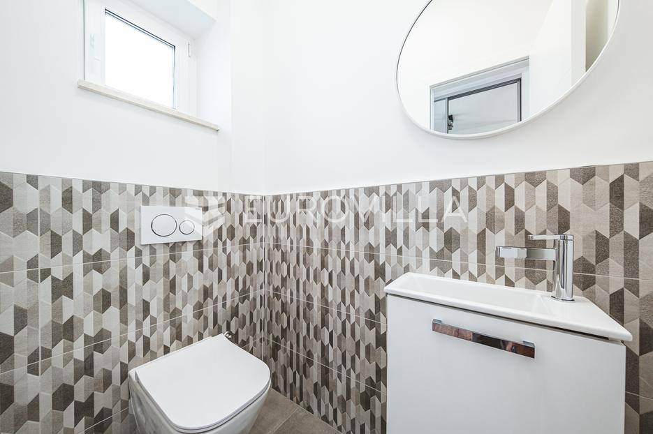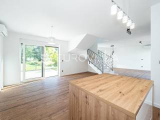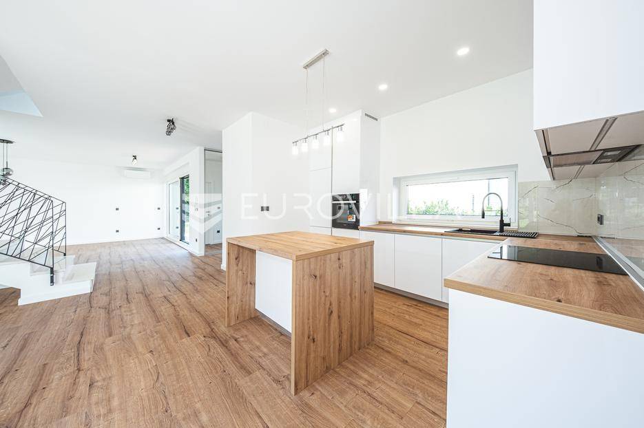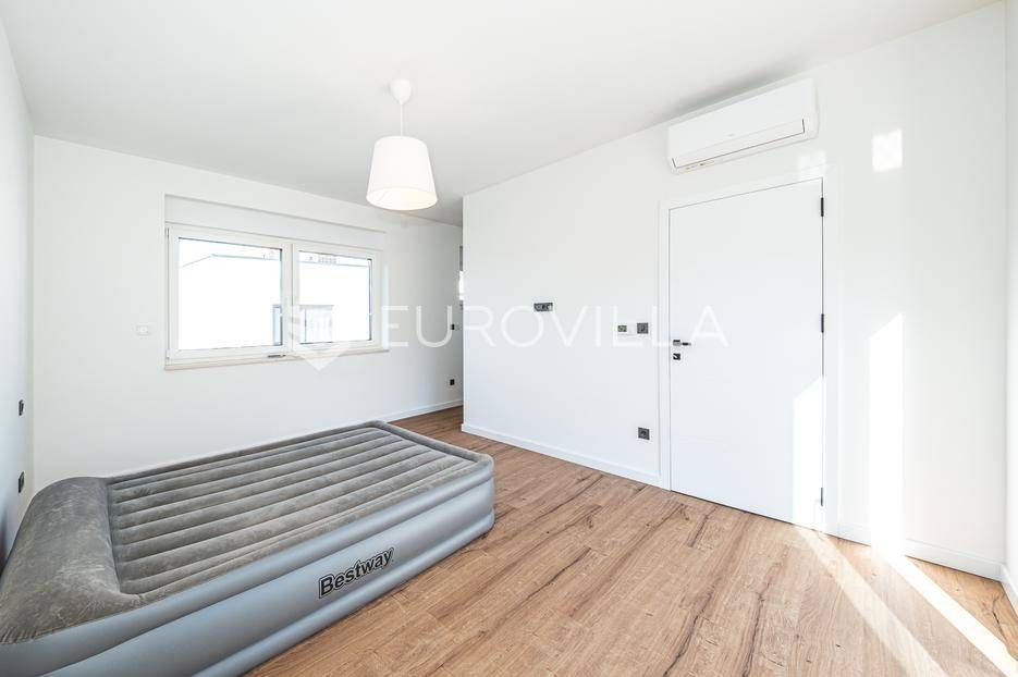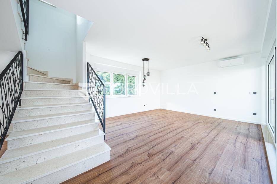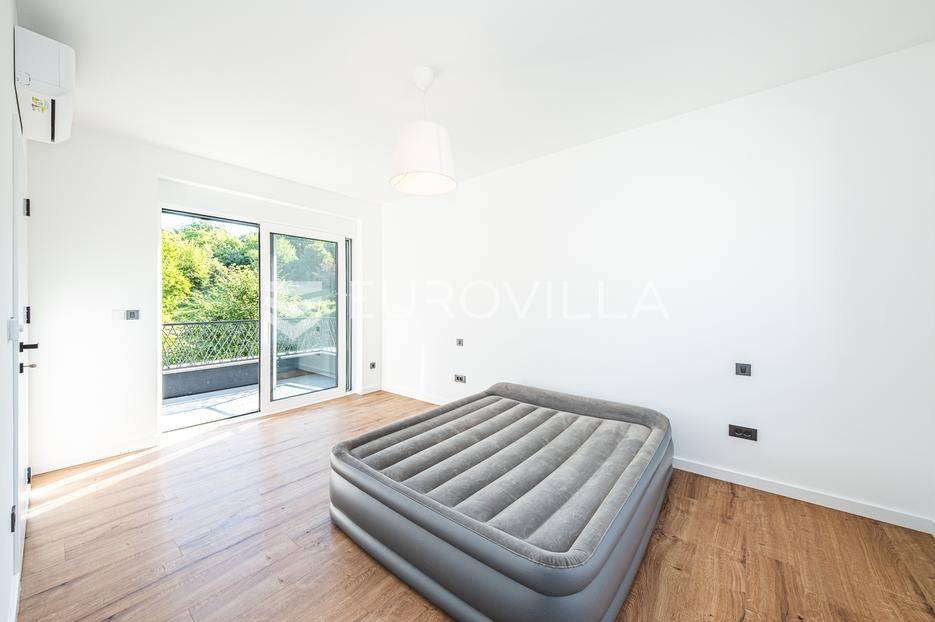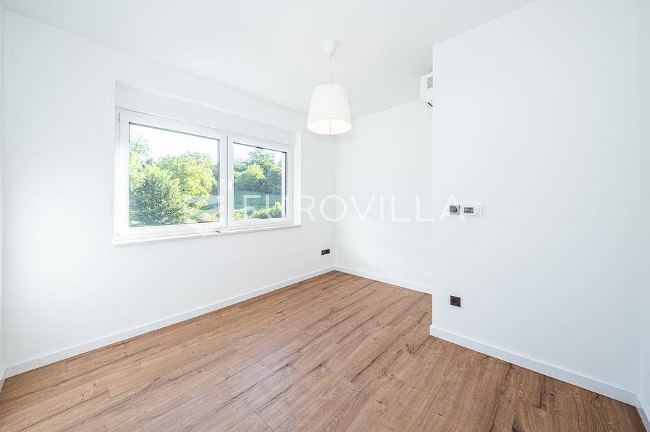 Zagreb, Šestine, prvi najam prekrasnog dvoetažnog dvojnog objekta u novogradnji, 110 m2 zatvorene površine s prostranim vrtom, garažnim i vanjskim parkirnim mjestom na izuzetnoj lokaciji nadomak šume.Nalazi se u dvojnom objektu s dva dvoetažna stana te svaki ima vlastiti ulaz i vrt za privatnost, samim time pruža osjećaj stanovanja u kući.Na prvoj etaži se nalazi ulazni prostor, prostrani dnevni boravak, kuhinja i blagovaonica, ukupno 50 m2. Također, dodatno je u prizemlju vanjski toalet te ima izlaz na terasu iz boravka prema južnoj strani i blagovaonskog dijela prema sjevernoj strani. U produžetku terasa je prostrani travnjak i zelenilo idealno za obiteljsko druženje i dječiju igru. Lijepim stepenicama idemo na gornju etažu na kojoj se nalaze tri spavaće sobe (jedna ima prekrasni balkon sa pogledom na zelenilo), kupaonica i vešeraj. Jedna od spavaćih soba je master soba te ima walkin garderobu i vlastitu kupaonicu.Lokacija kuće je iznimna, svega desetak minuta vožnje od centra grada, u blizini internacionalnih škola i ambasada, a najveća prednost je to što je sa istočne i sjeverne strane okružuje zelenilo i šuma. Time je savršena za one koji žele spojiti privatnost i mir sa životom u gradu.Za ostala pitanja stojimo Vam na raspolaganju.