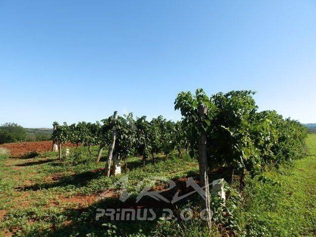 poljoprivredno zemljište 3000 m2 vinograd i oranica selo Nova Vas kod Brtonigle udaljenost od sela 1000 m, izlaz na glavnu cestu ucrtana put pogled na Brtoniglu i okolne brežuljke, s 5 redova zasađenih loza, parcela ima oblik pravokutnika.