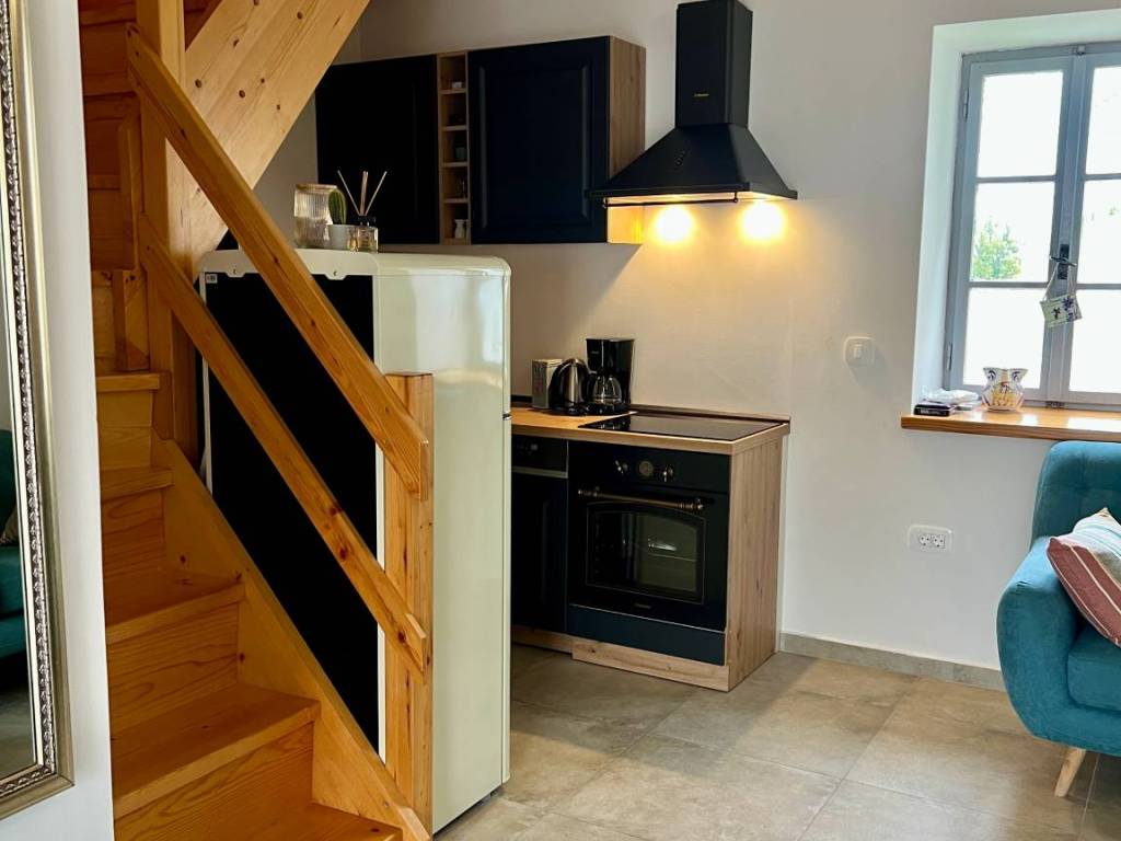 Completely renovated in 2024, the house retains its original stone character while offering all modern amenities: 2 bedrooms and 2 bathrooms, air conditioning, underfloor heating and a heat pump, city water supply, sewage system, and asphalted access road. There are also 2 parking spaces and a remote-controlled gate.