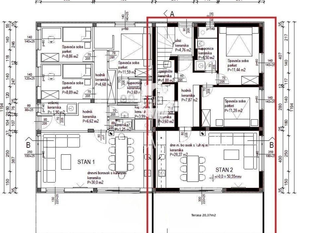 Istria, Poreč – Modern two-bedroom apartment with a large gardenAn apartment for sale, located on the ground floor of a smaller residential building with a total of four apartments, only 2 km from the centre of Poreč and the sea.The apartment has a total living area of 68.84 m² and consists of an entrance hall, storage room, two bathrooms, two bedrooms, and a spacious living room with kitchen and dining area.Terrace area: (actual size 38 m²: 60% covered, 40% uncovered) – 15.20 m² calculated using coefficients of 0.25 and 0.50.Total apartment area including terrace coefficients: 84.04 m².High-quality materials and equipment are used in construction:Daikin air-conditioning units are planned in every room,bathrooms will be equipped with higher-standard sanitary ware,LVT click-system vinyl flooring is planned in the bedrooms, with the possibility of choosing a different type of flooring upon agreement or with an additional charge agreed with the investor.The apartment is sold on a turnkey basis, without furniture and lighting fixtures.Two parking spaces in front of the building belong to the apartment.Thanks to its quiet location and close proximity to all amenities necessary for everyday living, this apartment represents an ideal solution for family living as well as a safe investment for the future.