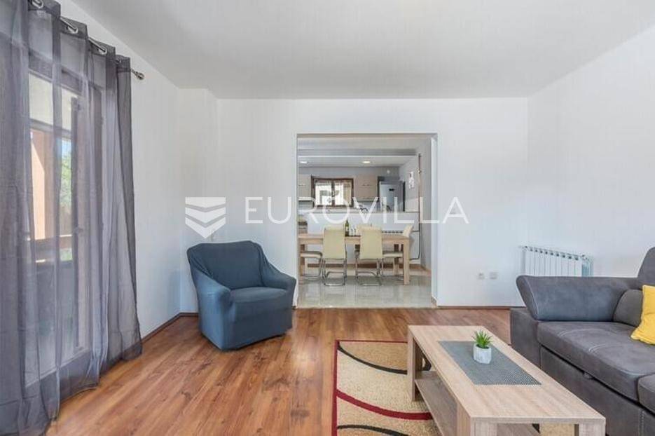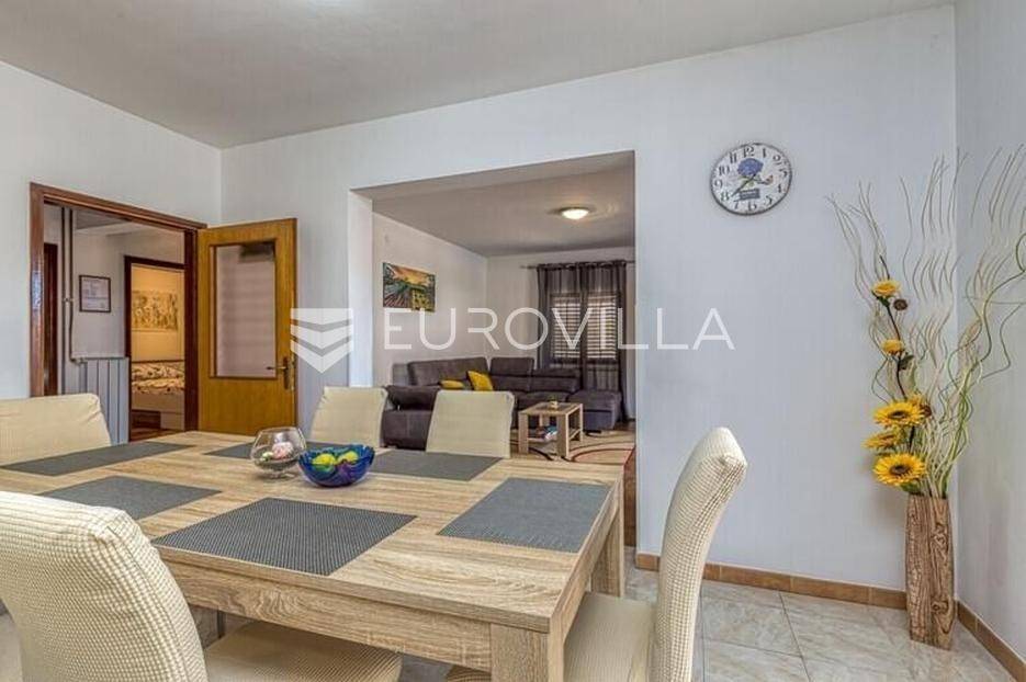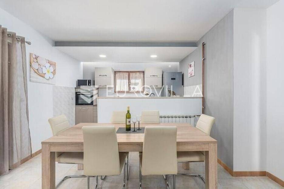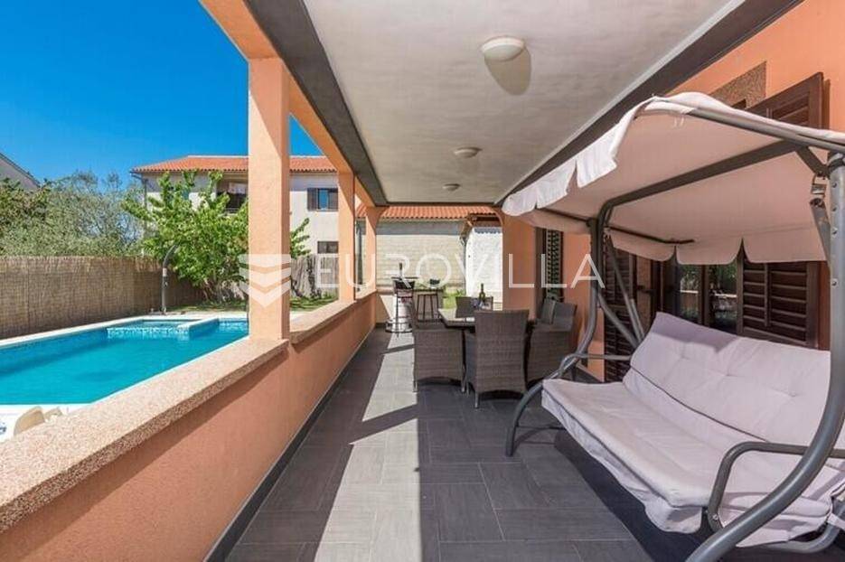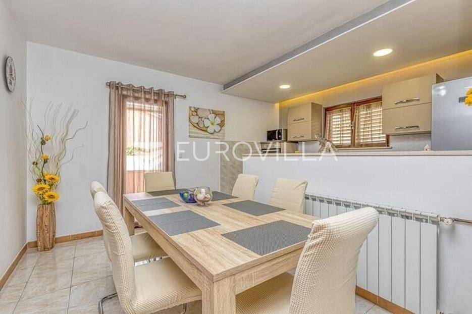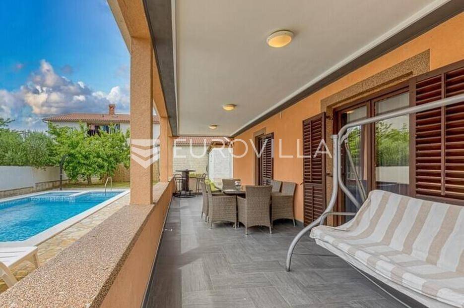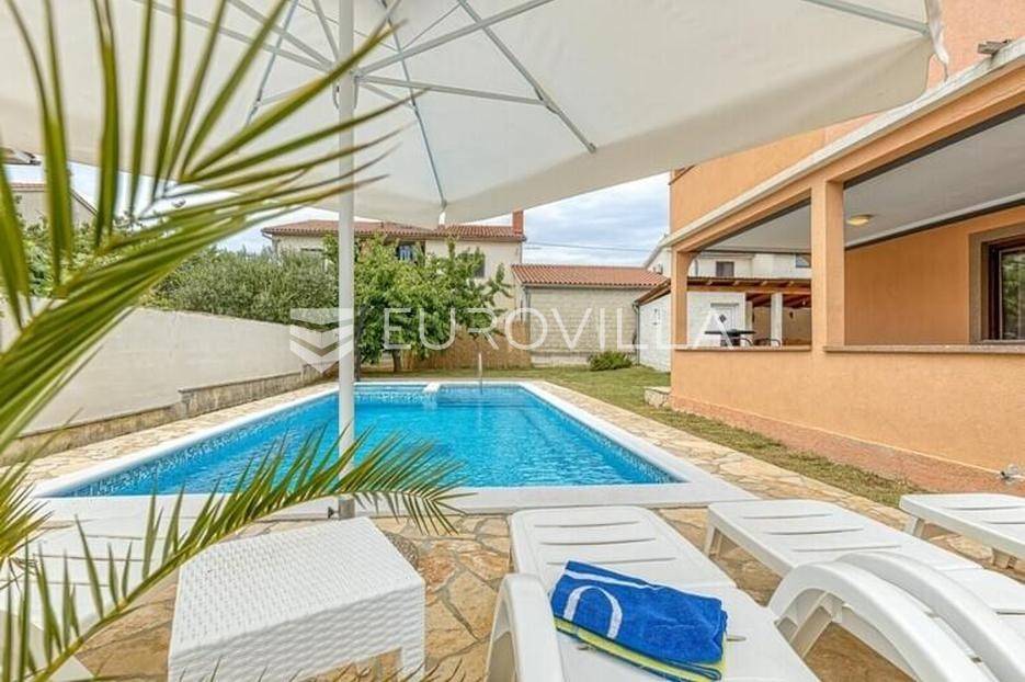 Ova velika, elegantna samostojeća kuća nalazi se na svega 10 min od Pule.Smještena u manjem, urednom i lijepom mjestu Loborika proteže se kroz dvije etaže, koje su u naravi dva velika i komforna stana. Prikladni za život i turistički najam.Stan u prizemlju NKP 100 m2 sastoji se od u potpunosti opremljene kuhinje i dnevnog boravka s izlazom na terasu i bazen s hidromasažnim mlaznicama, dječji bazen s vodenom gljivom, dvije komforne spavaće sobe s bračnim krevetom i dodatkom krevet za jednu osobu, kupaone. Dvorišni je dio u potpunosti ograđen, u jednom se dijelu nalazi natkrivena vanjska kuhinja s roštiljem i stolom za blagovanje.Stan na gornjoj etaži ima tri spavaće sobe, raskošnih 120 m2 velik, veliku terasu od 33 m2 te dodatnu terasu od 15 m2.Konoba NKP 15 m2 je idealno mjesto za druženja i okupljanje s prijateljima. Na raspolaganju je i velika garaža 35 m2 - prostor za jedno vozilo i skladištenje. Grijanje cijele kuće je plinsko te je ugodna temperatura tijekom zimskih mjeseci garantirana.Bazen u dvorišnom dijelu na uređenoj okućnici je dimenzija 8.5 x 4 m idealan za osvježenje tijekom ljetnih mjeseci.Ova velika i uredna kuća uspješno se iznajmljuje tijekom ljetnih mjeseci i ostvaruje lijep prinos.Za više informacija, organizaciju razgleda stojimo Vam na raspolaganju.