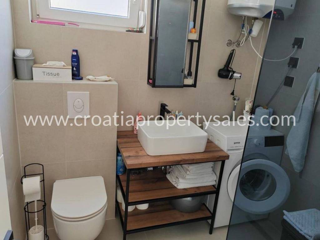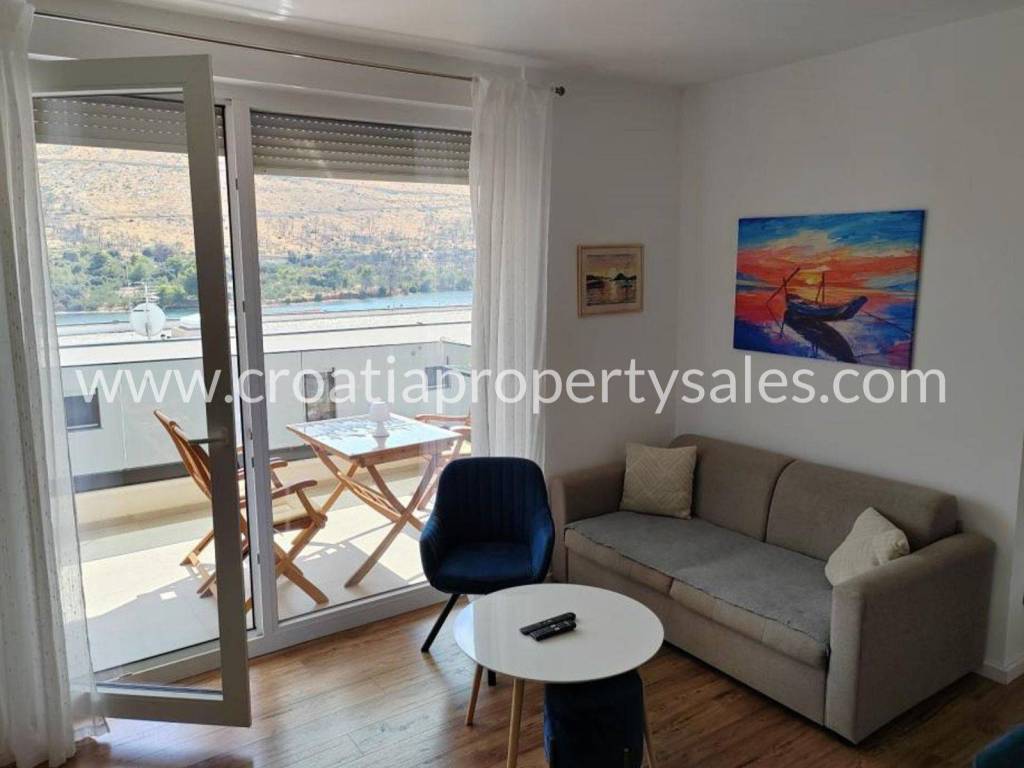Apartment of 55 m2 on the second floor in a newly built complex in a peaceful village between Šibenik and Trogir.Fully furnished with a beautiful sea view and a few minutes walk to the beach.The apartment is located on the 2nd floor of the building. Total net area 55 m2 and consists of two bedrooms, a bathroom, kitchen, dining room and living room and a spacious balcony with a sea view.Excellent location only 60 m from the beach and the sea. Close to shops and restaurants.It has one parking space and it is located 15 km from Šibenik.
