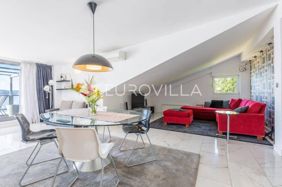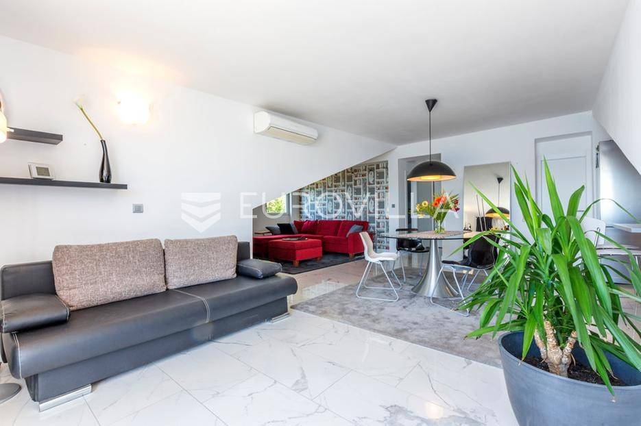 Dugi Rat, Jesenice, penthouse s pogledom na more NKP 118,93 m², smješten u mirnom mjestu kraj Omiša.Stan se sastoji od:· ulaznog hodnika· dvije spavaće sobe· kuhinje s blagovaonicom i dnevnim boravkom· prostrane terase s prekrasnim pogledom na more ( 49 m2 )Nekretnina je kompletno namještena i opremljena, spremna za useljenje bez dodatnih ulaganja.Zahvaljujući atraktivnoj lokaciji i velikoj terasi s panoramskim pogledom, stan je idealan za turistički najam ili kao mirno mjesto za odmor.Odlično povezana lokacija svega nekoliko minuta vožnje od Omiša i Splita.Za sve dodatne informacije i dogovor oko razgledavanja slobodno nas kontaktirajte.