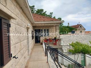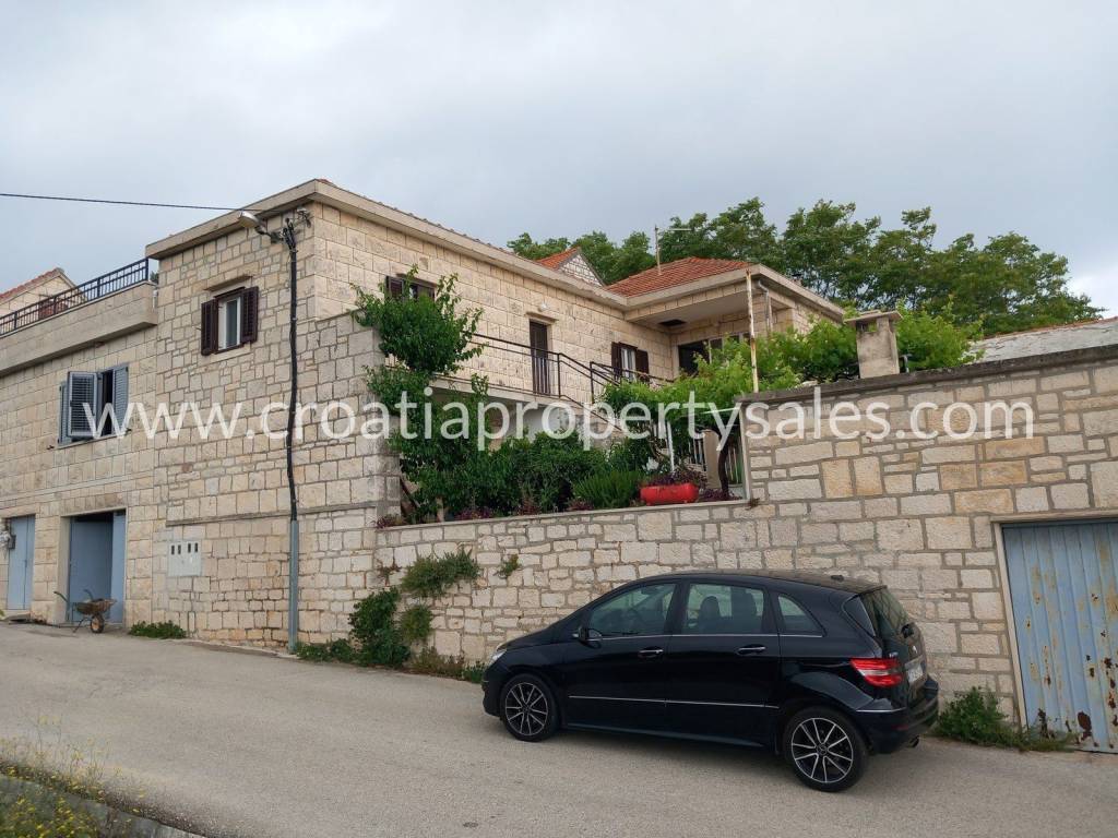 House in a village with a garage and a yard.The ground floor consists of a kitchen with a dining room, two bathrooms, and two traditional dalmatian "konobas". This is the older part of the building that requires more reconstruction.Two bedrooms are in additional building on the ground floor.The first floor consists of a living room and kitchen, two bedrooms, two bathrooms and a terrace with a sea view.