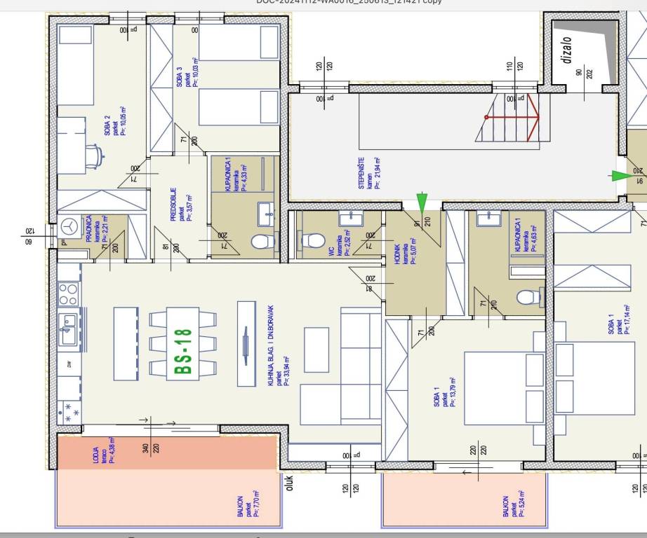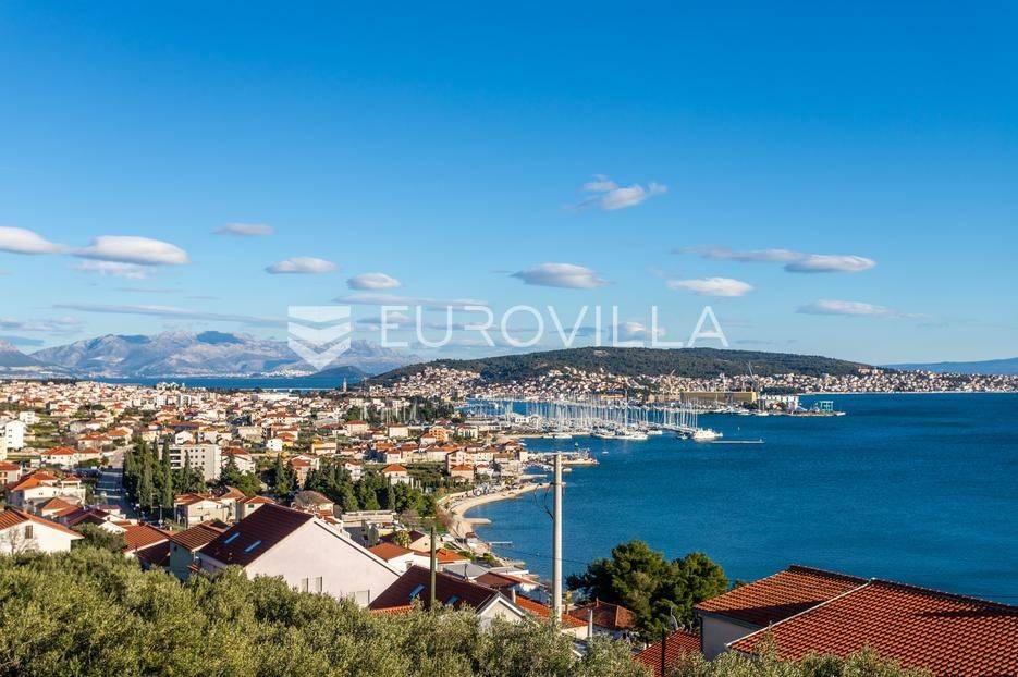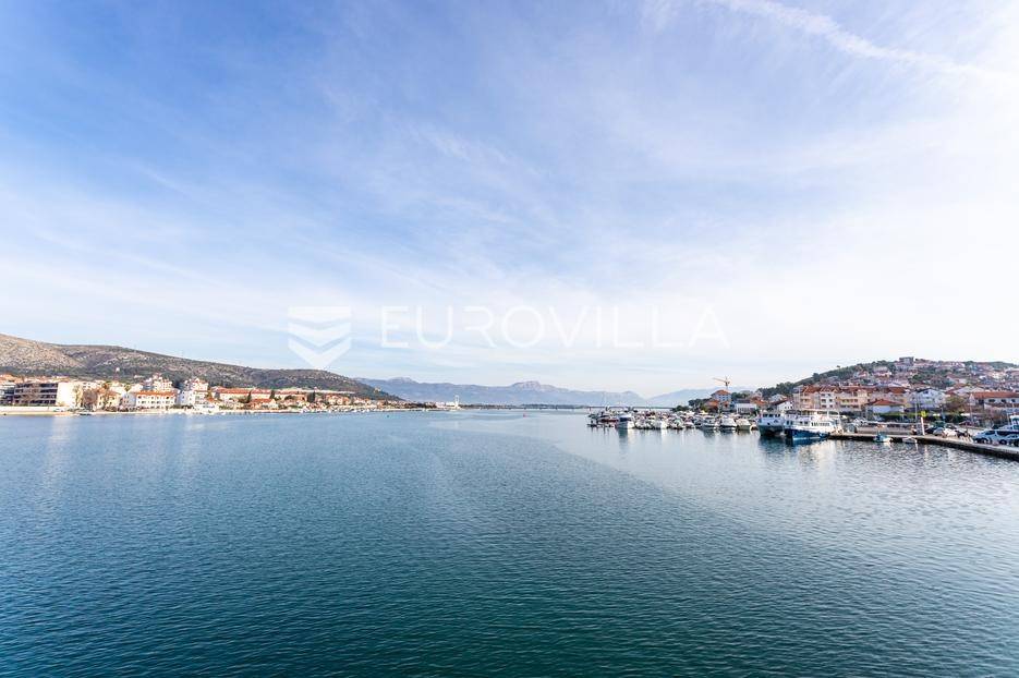 B- S18 Trogir- Seget, penthouse od 107 m2 s pogledom na more, komforan stan s tri spavaće sobe i dvije kupaonice u novogradnji s garažom koja je povezana liftom.Smješten na vrhu višestambene zgrade u novogradnji, na petom katu s pogledom na more i otoke. Penthouse koji se sastoji od: hodnika, komfornog dnevnoga boravka kuhinje i blagovaonice otvorenog tipa s izlazom na balkon, dvije komforne sobe sobe, predsoblja, velike master sobe s vlastitom kupaonicom te natkrivenim balkonom, kupaonice i praonice.Zatvorena stambena površina 90 m2, dva natkrivena balkona od 17,3 m2 na zapadu naslonjena na dnevni boravak i master sobu te krovne terase od 89 m2.Uz stan obvezna je kupnja dva garažna parkirna mjesta po cijeni 30.000 Eur.Orijentacija stana je zapad s krasnim pogledom na more i otoke.Predviđeni završetak radova je 07/2026.g.Kvalitetna gradnja uz izvrsnu toplinsku izolaciju termo fasada, PVC zatvori podizno klizne stijenke, keramičke pločice i parket, podno grijanje u kupaonici, kompletno sanitarijama opremljena kupaonica. Instalacije za klimatizaciju u cijelom prostoru stana s multi-split sustavom.Za sve dodatne informacije stojim vam na raspolaganju.