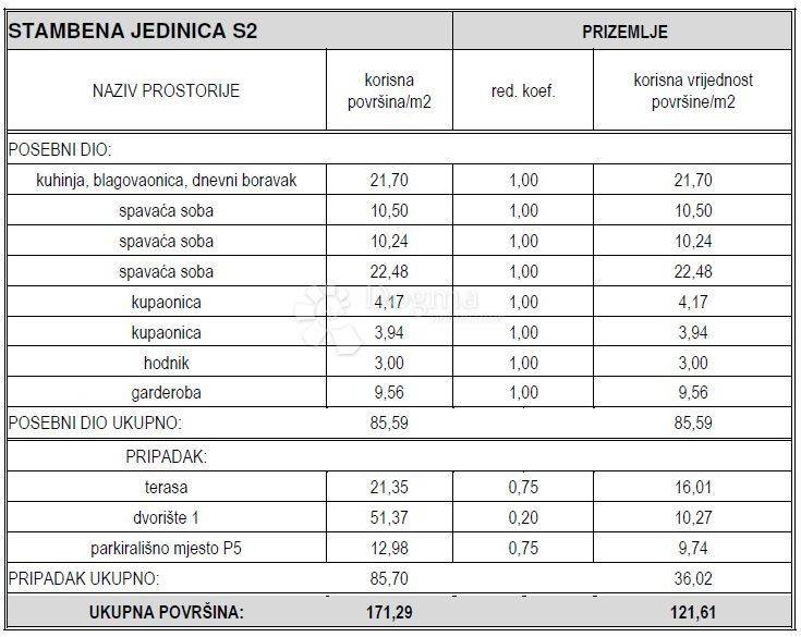 FOR SALE – UNIQUE THREE-BEDROOM APARTMENT IN VODICE, 50 m FROM THE SEA At the best location in Vodice, just 50 meters from the sea, lies residential unit S2 – a rare and invaluable opportunity on the market. The apartment is located on the ground floor of a modern new building and consists of: three bedrooms two bathrooms kitchen with dining area and living room hallway walk-in wardrobe Net internal area: 85.59 m² Additional features include: ground floor terrace (21.35 m²) parking space P5 in the basement (12.98 m²) private garden (51.37 m²) Total usable area: 171.29 m² Usable value area: 121.61 m² Apartment highlights: Perfect orientation – designed to maximize natural daylight, with large ALU windows and an impressive glass wall in the living room that connects the interior with the terrace and garden. Spacious garden with terrace – 51.37 m² of private outdoor space for relaxation, gatherings, and enjoying the Mediterranean lifestyle. Brightness and airiness – excellent room layout and large glazed surfaces create a feeling of warmth, openness, and comfort. Modern construction standards – the entire building is built according to high contemporary standards, including electric shutters, concealed cisterns, modern bathrooms with walk-in showers, and underfloor heating. This property offers a blend of modern design, comfort, and an exclusive location – ideal for family living, vacation, or as a premium investment. Vodice – the gem of Dalmatia Vodice is one of the most famous tourist centers on the Adriatic, only 15 minutes from Šibenik. The town is known for: long promenades along the sea beautiful beaches and crystal-clear waters rich gastronomic and cultural offer vibrant nightlife and social scene Vodice combines the charm of a Mediterranean town with the vibrancy of modern tourism, making it a perfect place to live or spend holidays. ID CODE: DA100065840 Nino Matas Asistent u posredovanju Mob: 097/681-3903 Tel: +385 21 293 201 E-mail: nino.matas@dogma-nekretnine.com www.dogma-dalmacija.com