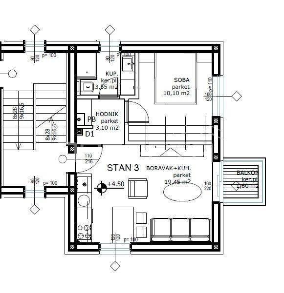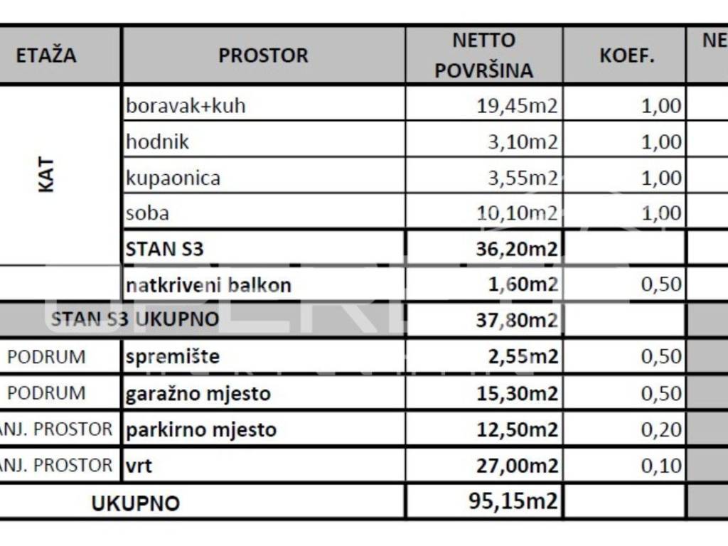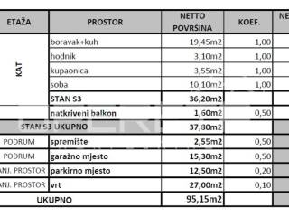 Stan S3 nalazi se na 1. katu suvremeno projektirane zgrade s ukupno pet stanova, što osigurava visoku razinu privatnosti i udobnosti. Zgrada ima tri etaže, a planirani završetak radova i useljenje predviđeni su za jesen 2026. godine.