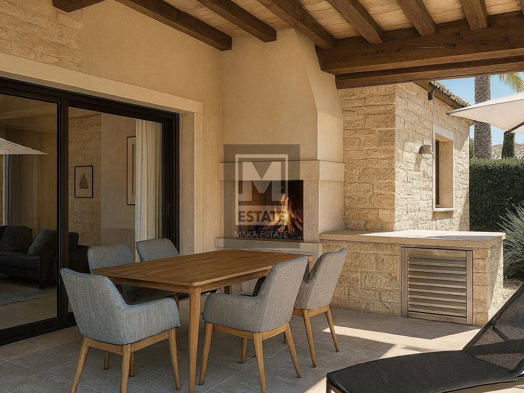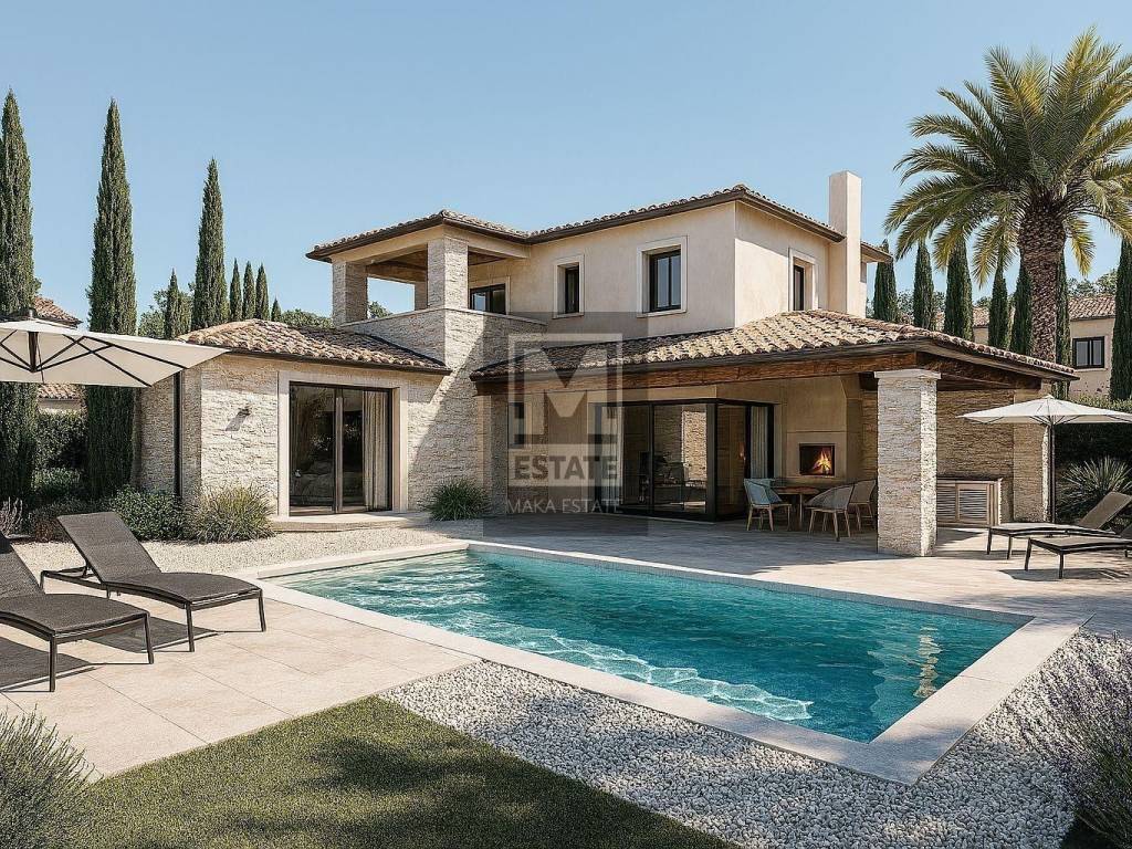 The outdoor space includes a large swimming pool, a spacious covered terrace with a barbecue, ideal for socializing and enjoying summer days.