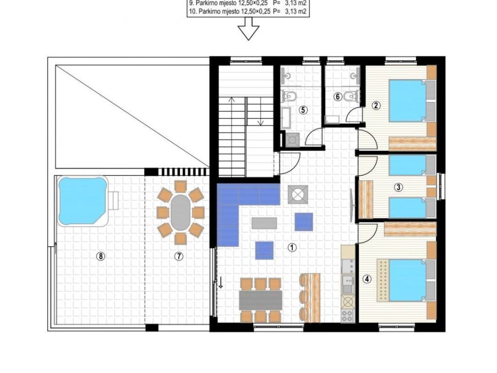 The micro-location is peaceful and highly attractive, surrounded by smaller family houses, while the beach is only a few minutes’ walk away (approx.