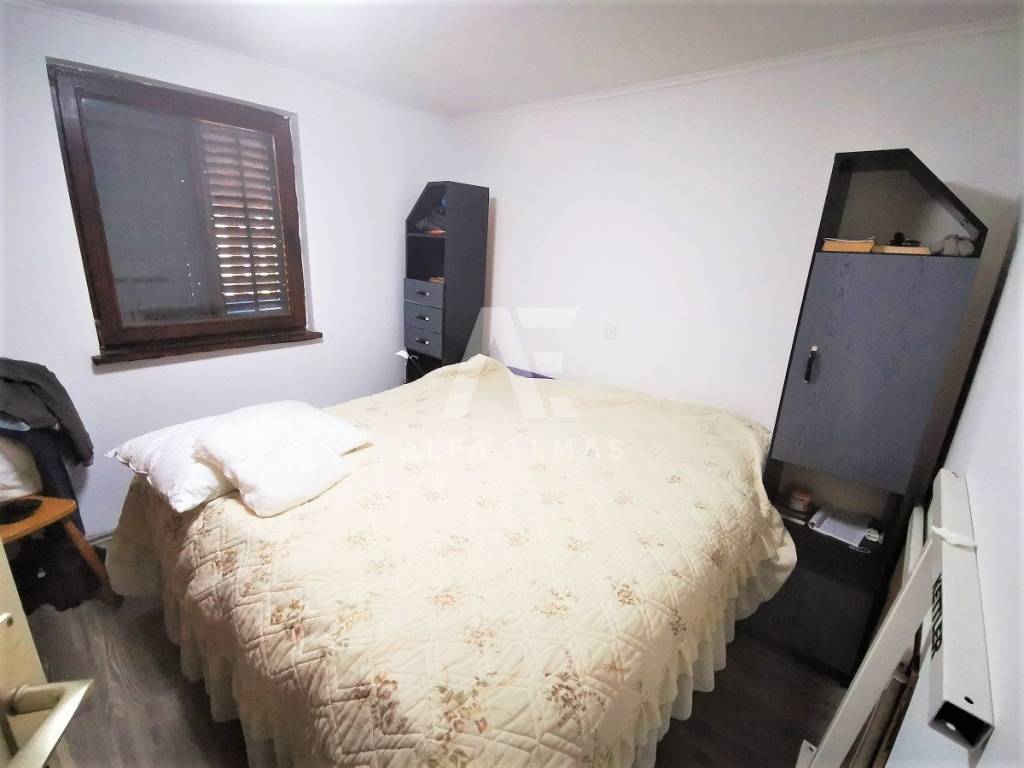 Dobrinj, Uvala Soline, semi-detached house with garden in a quiet location for renovation, built in 1990 on a plot of 381m2. A semi-detached house in the coves of Soline with two apartments, on the ground floor and first floor. On the ground floor of the semi-detached house there is an apartment of 45 m2 consisting of a hallway, bathroom, storage room, bedroom, kitchen and dining room and a living room with access to a covered terrace of 18 m2. On the first floor of the semi-detached house there is an apartment of 45 m2 with the same layout of the rooms as on the ground floor. In the garden there is a garden terrace with a barbecue and a bread oven, a garden with tall and low Mediterranean plants and two parking spaces. The semi-detached house is located 360 m from the sea and promenades and accompanying facilities. Adaptation is needed.