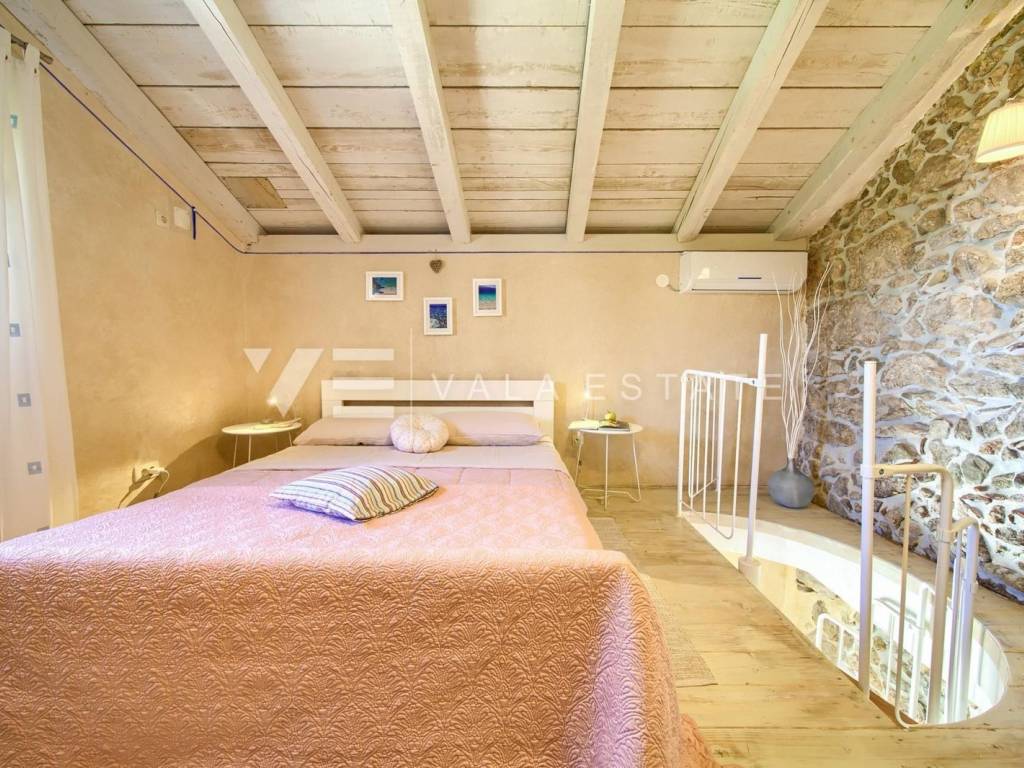 Real estate island Krk, Dobrinj - for sale is a new Mediterranean semi-detached house with a beautifully landscaped garden on the edge of the green zone. The house occupies a living area of ​​71.47 m2 and is divided into a ground floor, a first floor and a high attic, which are connected by internal stairs. On the ground floor there are two bedrooms and a bathroom, on the first floor there is a space that combines the kitchen, dining room and living room with access to a large terrace of 10 m2 with a beautiful view of the forest. In the attic there is a spacious bedroom with its own bathroom. Quality building materials were used in the construction of the house, the house is air-conditioned, has a wood-burning stove, quality PVC and wooden joinery, is fully equipped with quality equipment and is very tastefully furnished and is being sold as such. The yard full of greenery and Mediterranean plants occupies 450 m2, it is well maintained and has an outdoor grill, a summer kitchen with a terrace for socializing, a jacuzzi, a sunbathing area, an additional building with a sauna with a toilet and space for two parking spaces. The location is quiet, surrounded by greenery, about 3,000 m from the sea and in the immediate vicinity of the town center, which offers all the basic facilities - a shop, post office, clinic, school, restaurant and museums. This charming house is ideal for all lovers of a peaceful vacation, but it is also a good opportunity for investment for tourist rental purposes. Agency Vala Estate Malinska will provide you with a safe and transparent transfer of ownership and all necessary documentation. ID CODE: k-432 VALA ESTATE d.o.o. Mob: +385 99 444 0550 Tel: +385 51 568 917 E-mail: info@vala-estate.com www.vala-estate.com