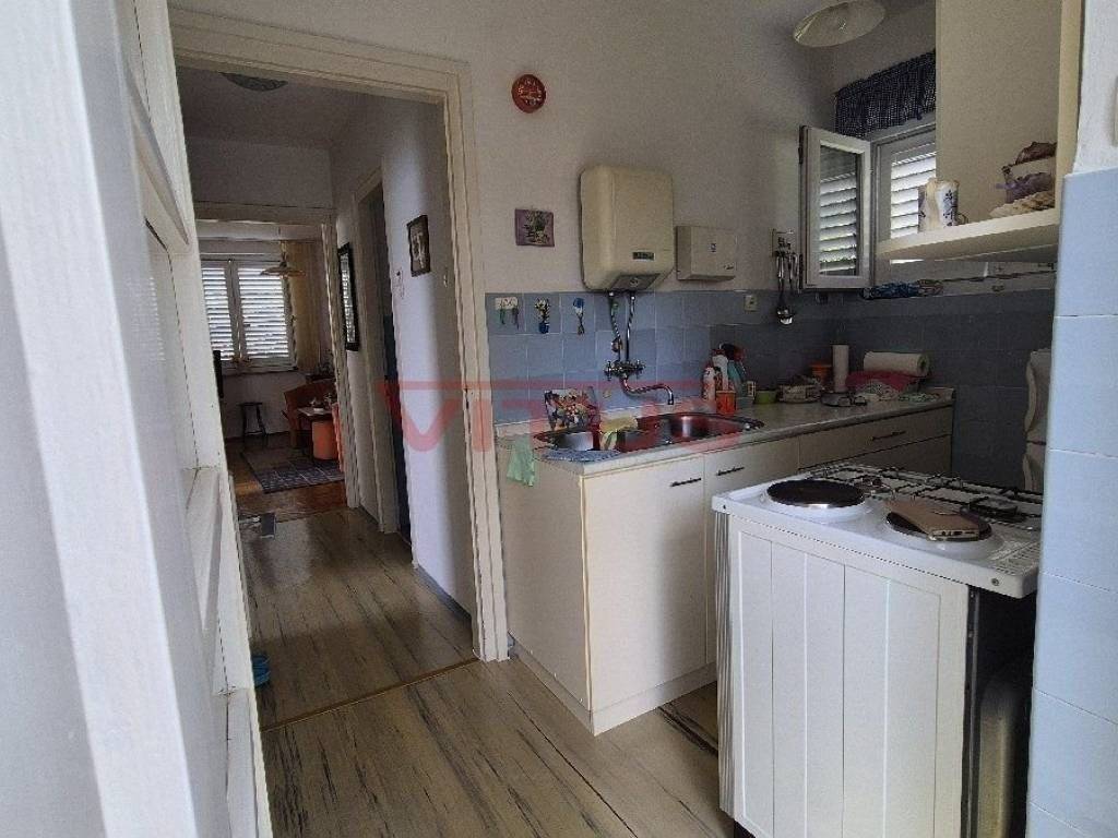 Island of Krk, Malinska! Exclusive location, first row to the sea! Detached house of 57 m2 is located on a plot of 671 m2 right by the sea. The house consists of a hallway, living room, kitchen, bedroom, bathroom, two terraces and storage room. Spacious garden of 600 m2 provides privacy, natural shade and direct access to the beach. The house is air-conditioned, has two parking spaces and a beautiful sea view! It is also possible to reconstruct and build a house with a floor size of 150 m2 (basement, ground floor and first floor) with two residential units.