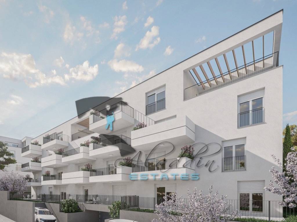 Exceptionally attractive residential building with four floors in a new development in Okrug Gornji, on the island of Čiovo, with a total of 17 apartments. Available is the penthouse apartment S17 on the second floor, consisting of a living room, dining room, and kitchen as one space, entrance area, three bedrooms, three bathrooms, a toilet, laundry/storage room, and a hallway. The apartment also includes several balconies and terraces, and it is possible to additionally purchase a basement storage room and a garage parking space. In short: