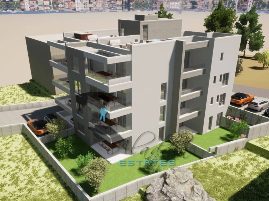 Extremely attractive residential building with four floors in a new development in Okrug Gornji, on the island of Čiovo, with a total of 11 apartments. Apartment S11 on the second floor is available, consisting of a living room and dining area as one unit, kitchen, entrance hall, three bedrooms, two bathrooms, hallway, as well as a covered terrace and loggia. The apartment also includes two outdoor parking spaces and a spectacular rooftop terrace with luxurious lighting and installations for the possible setup of a summer kitchen and jacuzzi. In brief: