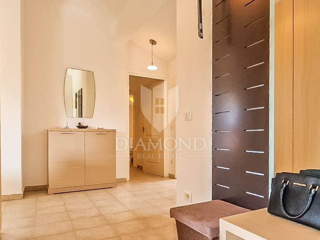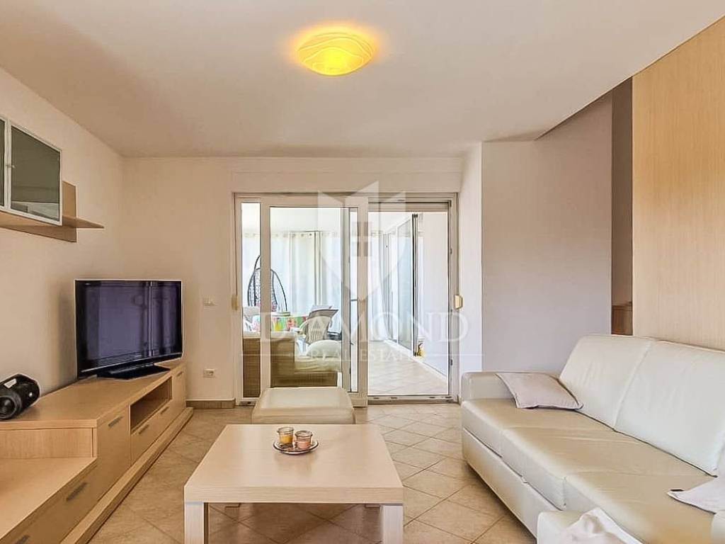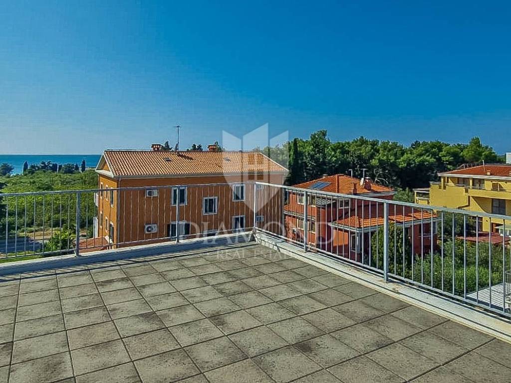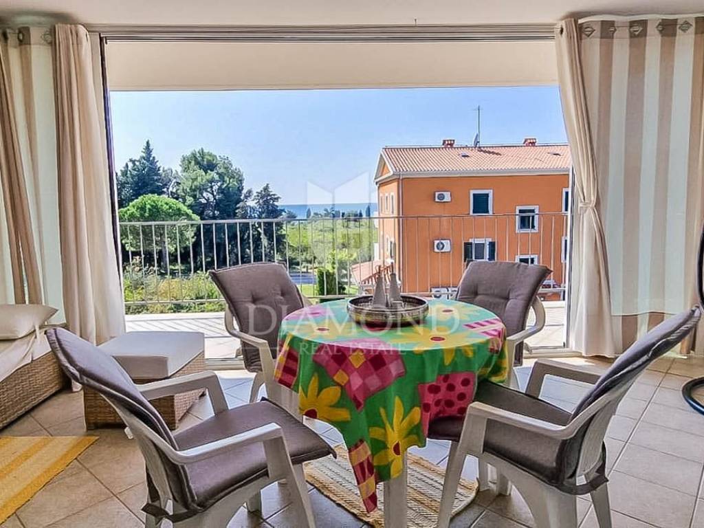 Istria, Umag, surroundings. A spacious and modern apartment of 116 m² is for sale in the vicinity of Umag, combining comfort, functionality and a beautiful sea view. The apartment consists of three bedrooms, two bathrooms, a kitchen with additional storage, and a balcony and roof terrace with an open view of the sea. It is located in a quiet street close to the beaches, which ensures the perfect balance between silence and proximity to all necessary amenities. The proximity of the sea and beaches allows you to enjoy the Mediterranean lifestyle, while the building itself was built in 2010 in a modern style. The apartment is being sold furnished, and parking is also provided. This property makes an excellent opportunity for family life or as an investment in an attractive location.