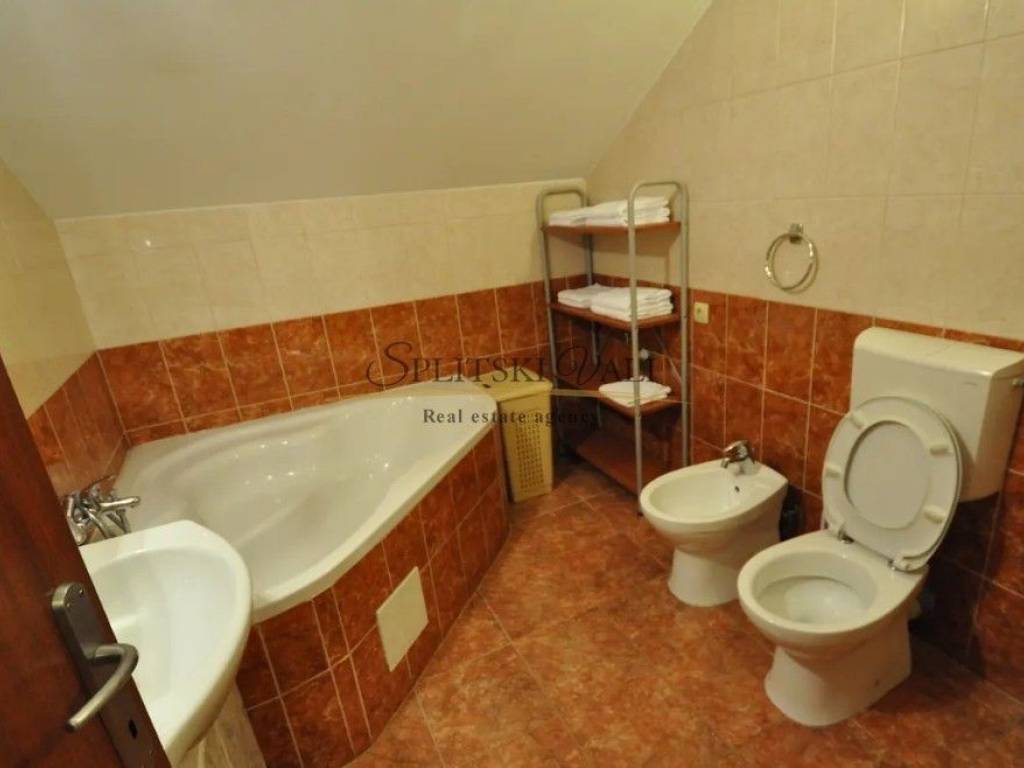 Posredujemo u prodaji trosobnog stana u stambenoj zgradi.Stan se nalazi na dvije etaže te je ukupna površina 88.14m2.1. etaža (3. kat zgrade)-dnevna soba s potpuno opremljenom kuhinjom i blagovaonicom, WC, balkon2. etaža (potkrovlje)-tri spavaće sobe, galerija, kupaonica (kada i tuš)Stan se prodaje djelomično namješten (kuhinja, kupaonica i WC).Zgrada je nedavno renovirana (novi krov, fasada s izolacijom 10cm, parlafonija, pločice na balkonu) te je spojena na gradsku kanalizaciju.U stanu se nalaze dva klima uređaja te mu pripada jedno vanjsko parking mjesto.Lokacija je izvrsna, u blizini donje kaštelanske ceste te svih sadržaja (škola, vrtić, trgovina-nekoliko minuta hoda udaljenosti).Vlasništvo je uredno te je moguća kupnja putem stambenog kredita.Za sve dodatne informacije molimo da nam se javite na +385991600400 (Josipa).Kupac plaća agencijsku proviziju.Razgled nekretnine moguć je isključivo uz potpisani Ugovor o posredovanju, a što je u skladu sa Zakonom o zaštiti podataka i Zakonom o posredovanju i prometu nekretninama.