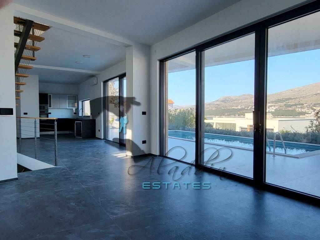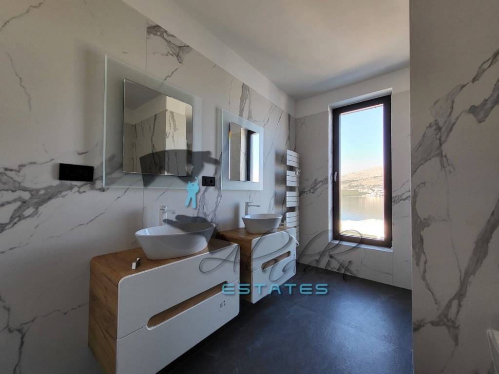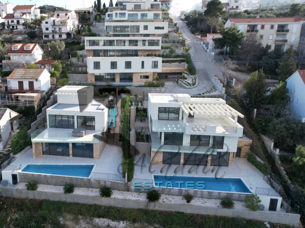 Super luksuzna i moderna vila na tri etaže u Okrugu Donjem, u drugom redu do mora. Novogradnja, s 326 m2 stambenog prostora, vanjskim grijanim bazenom od 28 m2 i izuzetno uređenom okućnicom od oko 450 m2. Suteren sačinjavaju kupaonica, praonica rublja te velika soba od 53 kvadrata koja je idealna za uređenje kao fitness centar, sauna ili već prema želji. U prizemlju se nalazi vrlo prostrana blagovaonica, dnevni boravak i kuhinja od ukupno 76 kvadrata, te kupaonica i ostava. Tu je i velika terasa s modernim bazenom, kao i garaža za dva vozila. Na katu se prostiru četiri spavaće sobe s još tri kupaonice, kao i raskošna vanjska terasa.