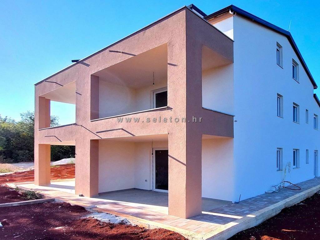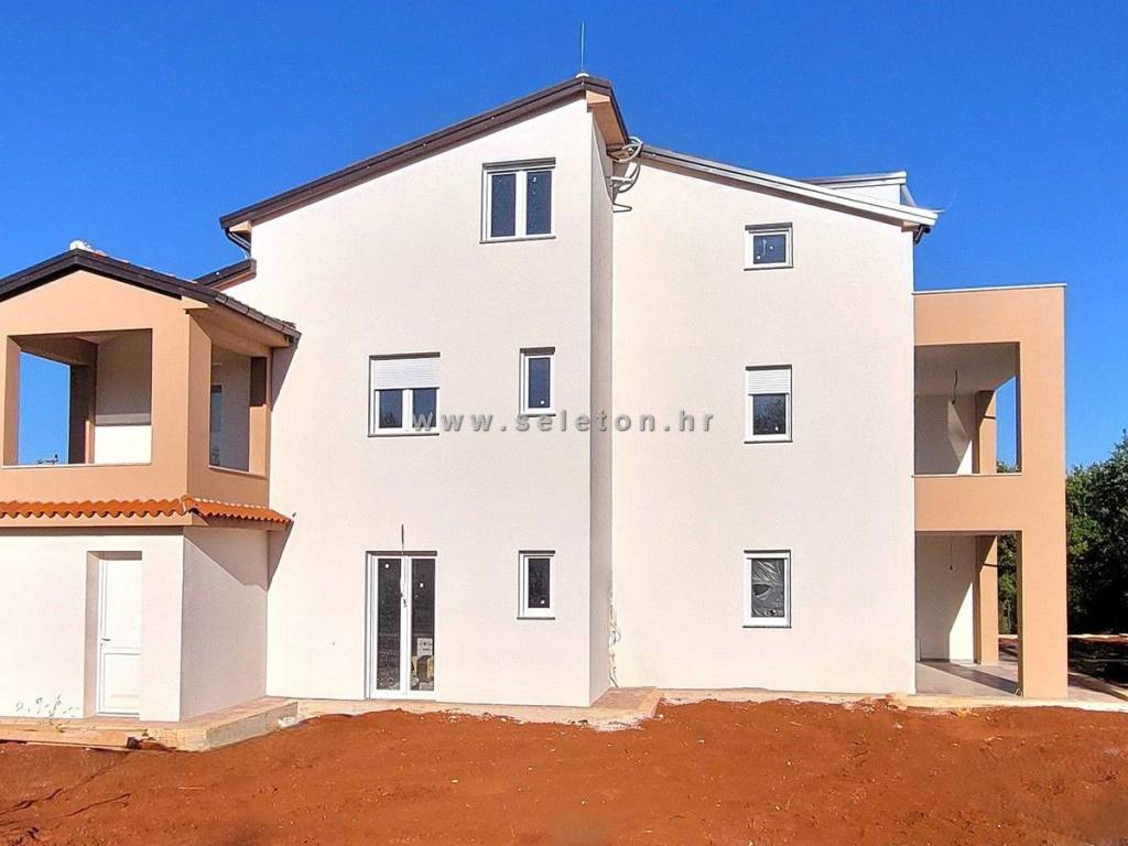 A new apartment for sale in the vicinity of Poreč, area 65.60 m², consists of a living area, hallway, 2 covered terraces, 2 bedrooms and a bathroom. The apartment is located on the first floor in a building with only 5 residential units, has underfloor heating in the bathroom, 3 air conditioners (in the living room and in the bedrooms), security entrance door, has a storage room of 3.78 m² on the ground floor of the building and one parking space in front of the building. The apartment is approximately 9 km from the center of Poreč and the sea.