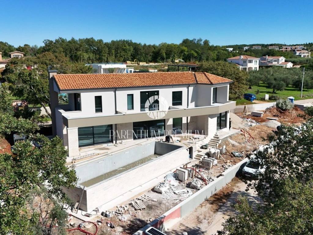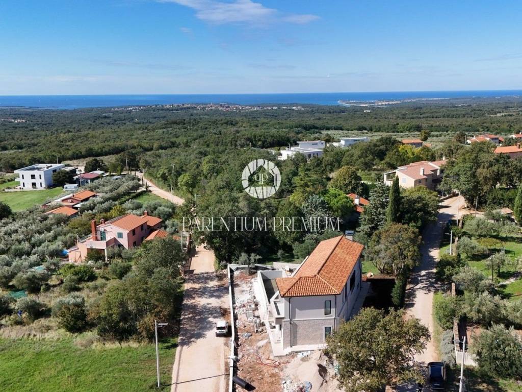 Istria, PorecIn a small town not far from Poreč filled with all the amenities needed in everyday life (market, restaurant, cafe, school, kindergarten) on a plot of 1000m2 and with a fantastic view of the sea, this imposing villa of 250m2 net area will be located.The house is divided into 2 floors, and on the ground floor there is an open living room with a kitchen and dining room, a bedroom with a bathroom, an auxiliary room (laundry room, etc.), and a toilet. The living room leads to a spacious covered terrace.On the first floor, there will be 3 bedrooms, each with its own bathroom, and one study. From the master bedroom, it will be possible to go out to the terrace, which will be partially covered.In the yard, there will be a swimming pool of 49m2 with a sunbathing area and a diligently arranged and maintained green belt around the house.Heating/cooling will be done using floor heating and air conditioning.The property is included in the VAT system, and VAT is part of the stated sales price.Due to its exceptional location and proximity to everything necessary for life and enjoyment, this property is great for solving the housing issue as well as for investing in tourism and tourist rentals.