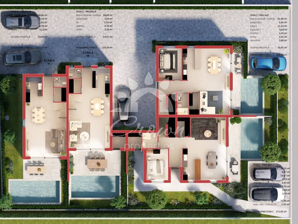 In a quiet area of Poreč, just 1.5 km from the town center and the coast, a modern residential project is being developed, combining high construction quality, functionality, and elegant design. In the second phase, four residential units are planned.